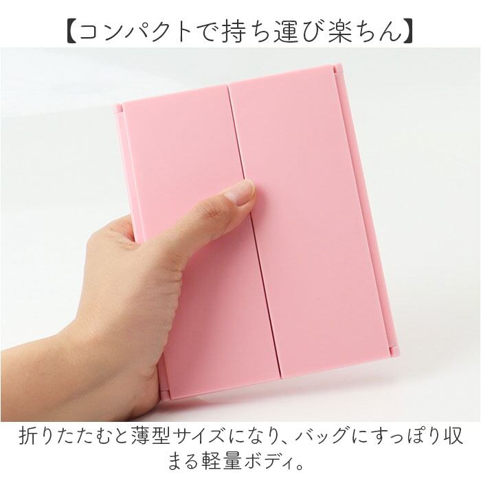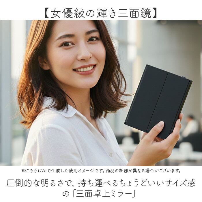 ・圧倒的な明るさで、持ち運べるちょうどいいサイズ感の「三面卓上ミラー」