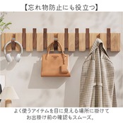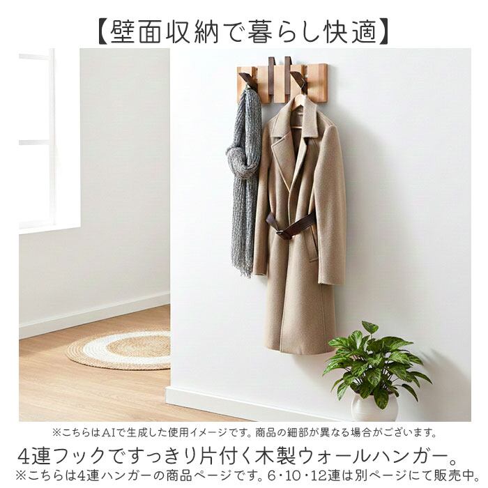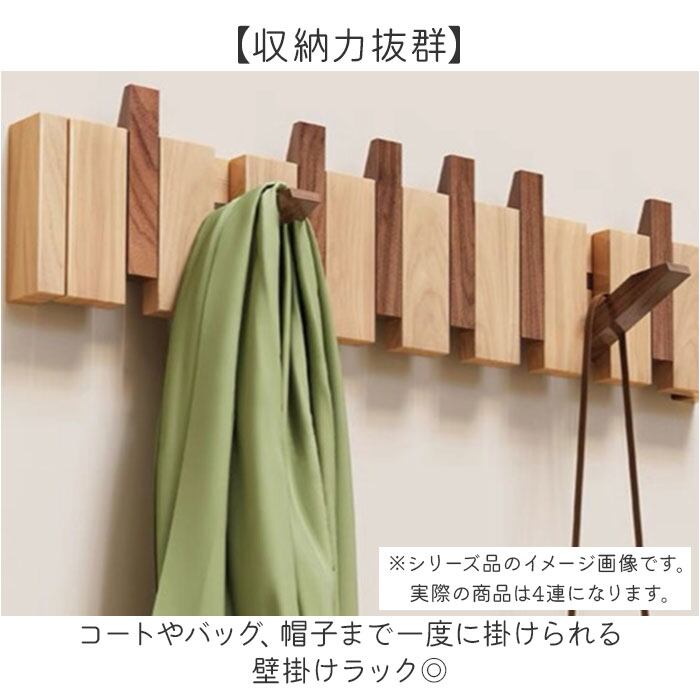 4連フックですっきり片付く木製ウォールハンガー。