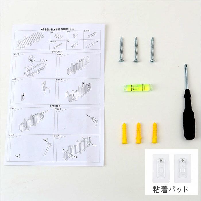 ※粘着シール x 2個、プラスドライバー x 1本、ネジ x 3本