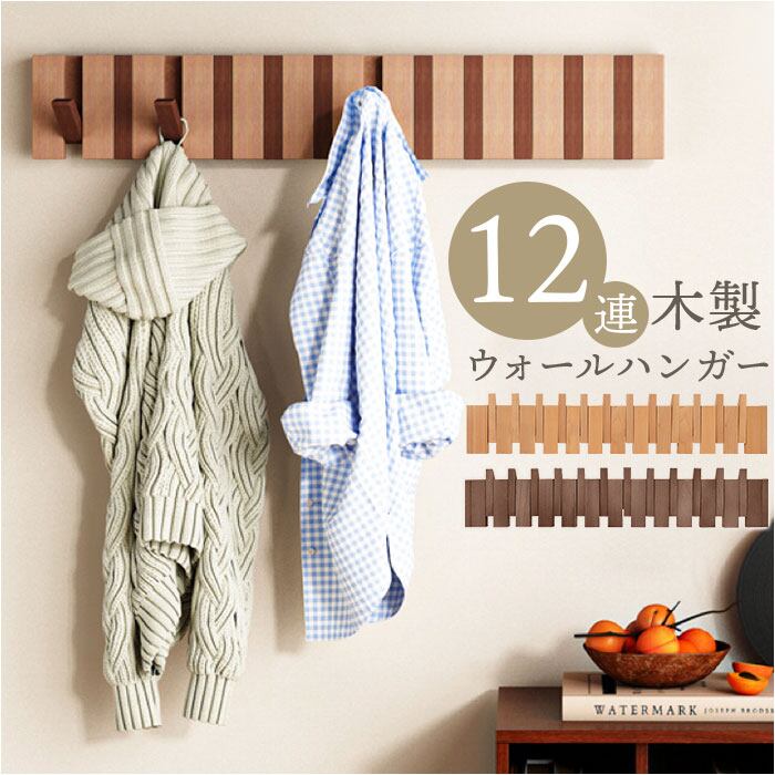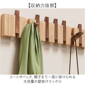 【壁面収納で暮らし快適】12連フックですっきり片付く木製ウォールハンガー。