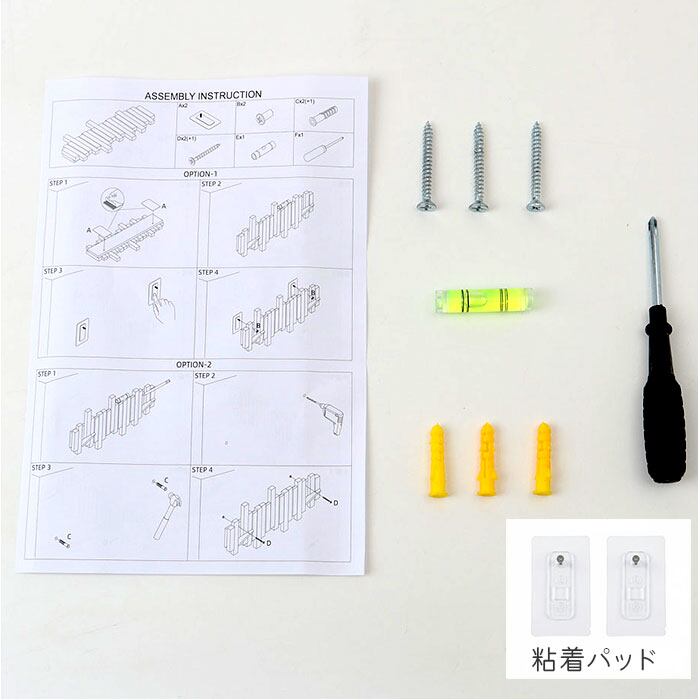 ※粘着シール x 3個、プラスドライバー x 1本、ネジ x 3本