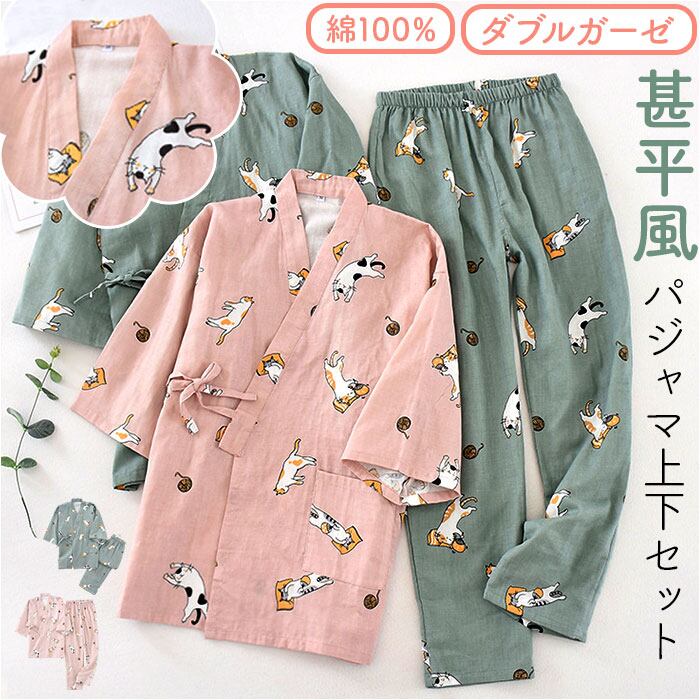 ・ダブルガーゼの甚平風パジャマ上下セット