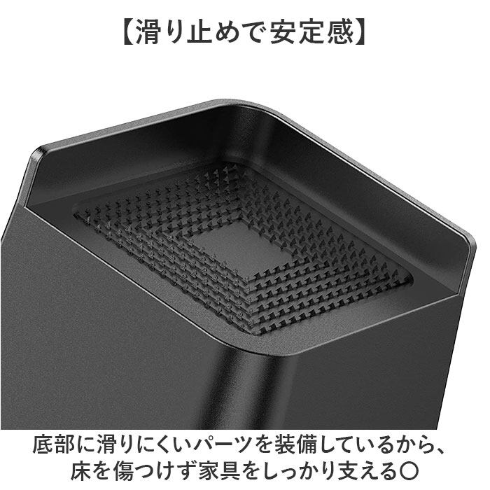 ・底部に滑りにくいパーツを装備しているから、床を傷つけず家具をしっかり支える〇