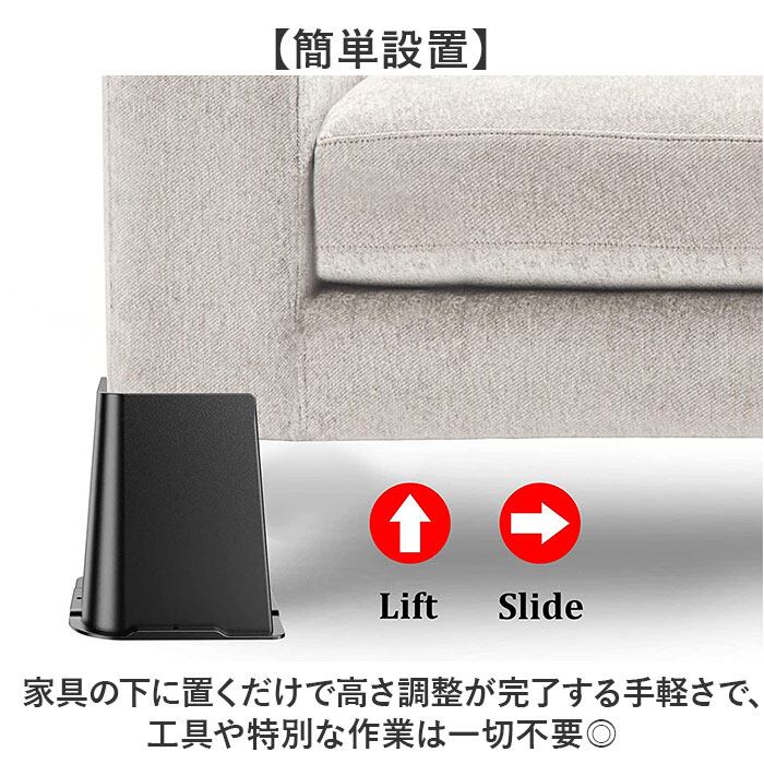 ・家具の下に置くだけで高さ調整が完了する手軽さで、工具や特別な作業は一切不要◎