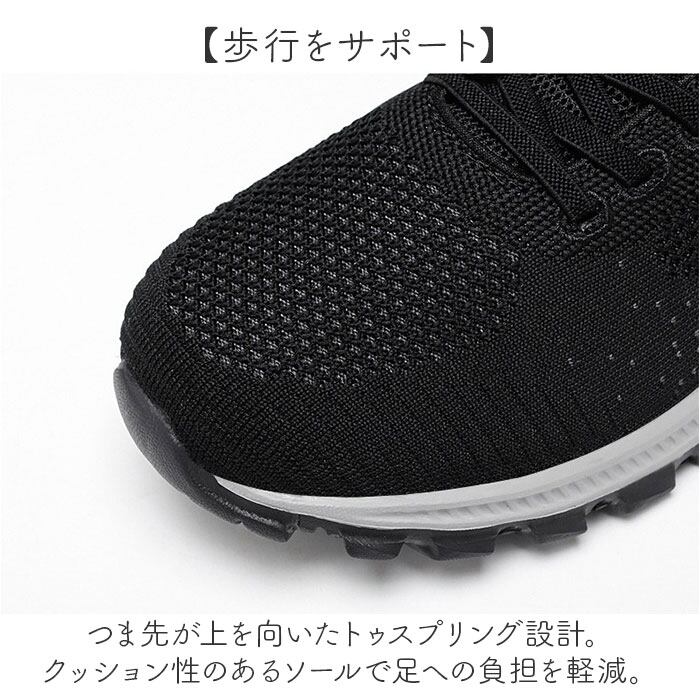 ・つま先が上を向いたトゥスプリング設計。クッション性のあるソールで足への負担を軽減。