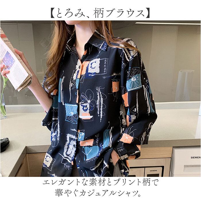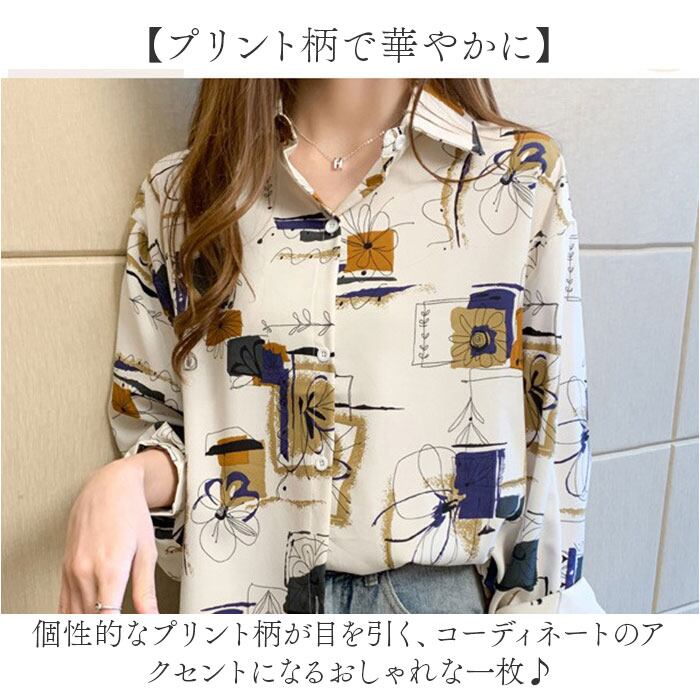 ・個性的なプリント柄が目を引く、コーディネートのアクセントになるおしゃれな一枚♪