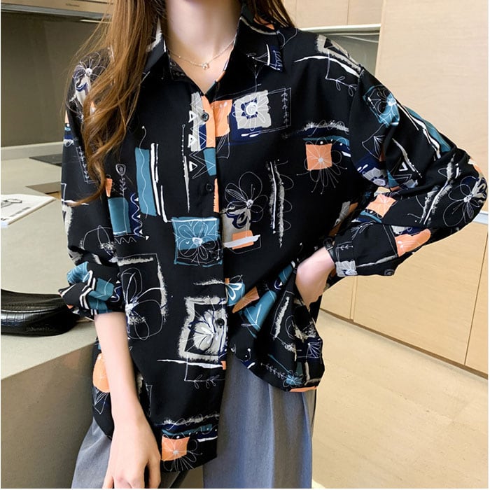 ・エレガントな素材とプリント柄で華やぐカジュアルシャツ。