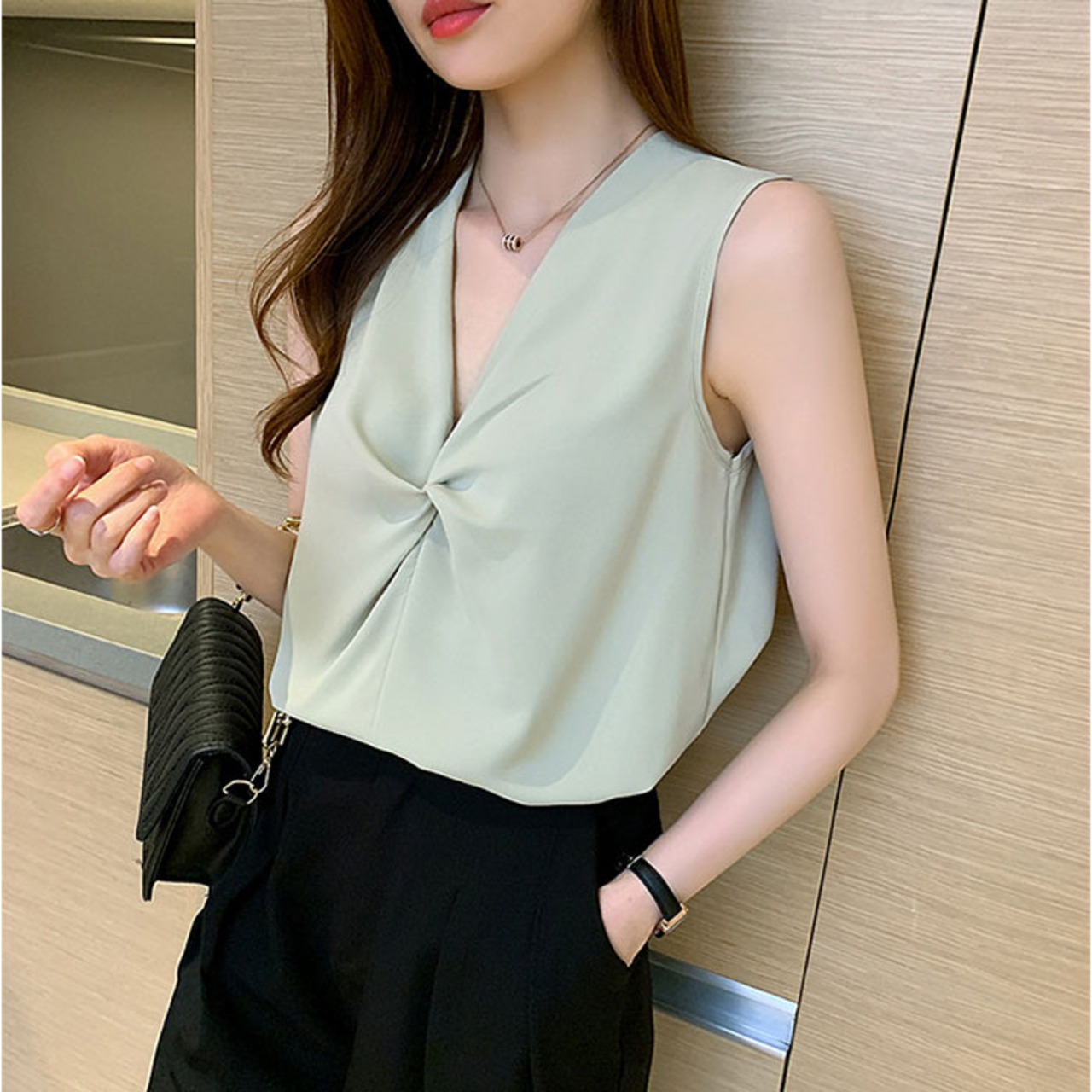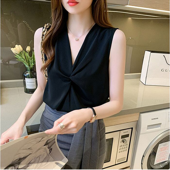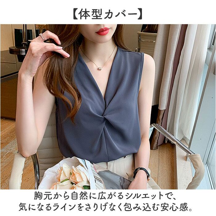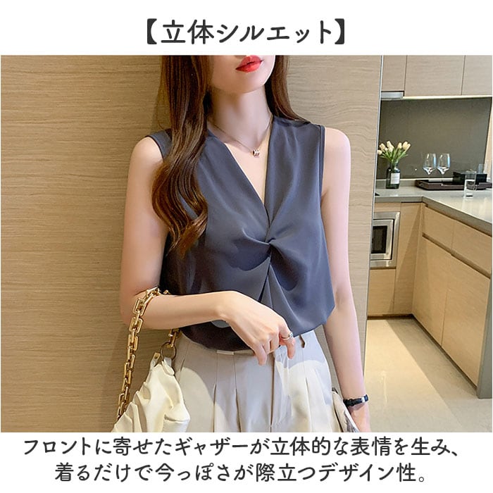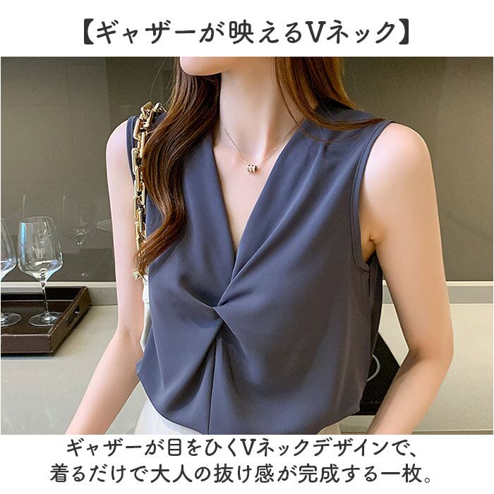 【ギャザーが映えるVネック】