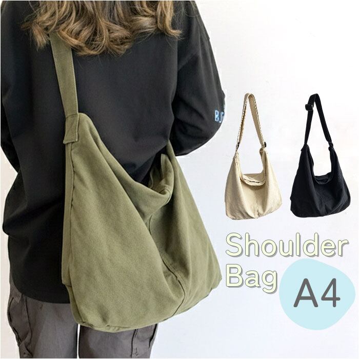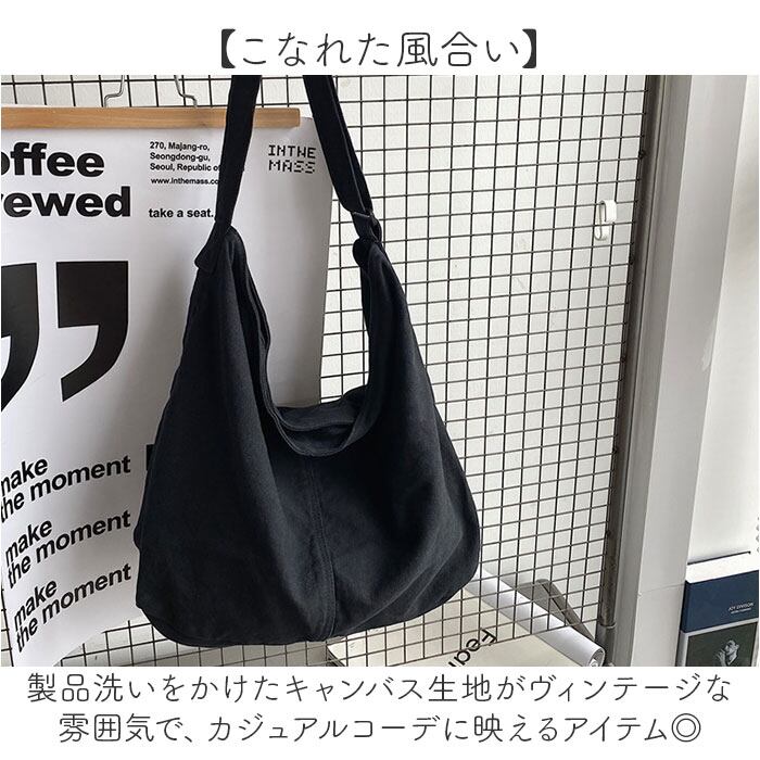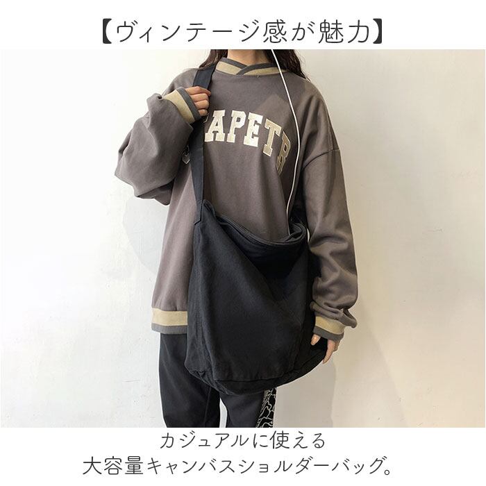 ・カジュアルに使える大容量キャンバスショルダーバッグ。