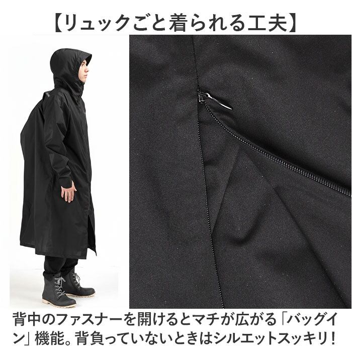・リュックを背負ったまま着られる「KELTRAS バッグインレインコート」