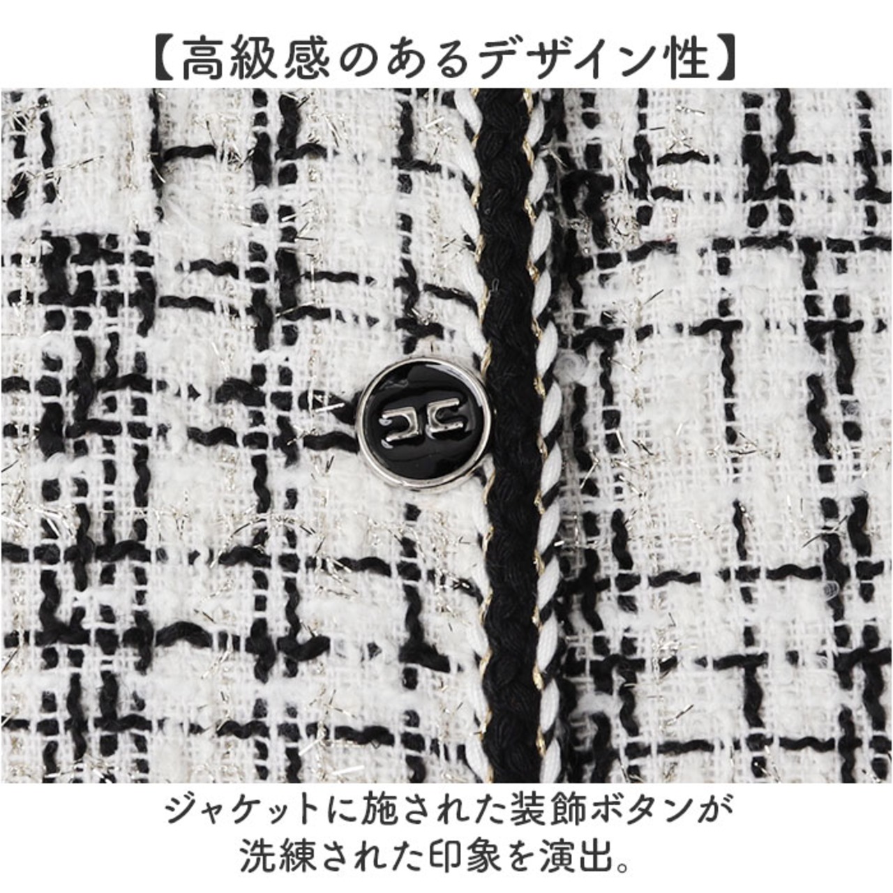 ・ジャケットに施された装飾ボタンが洗練された印象を演出。