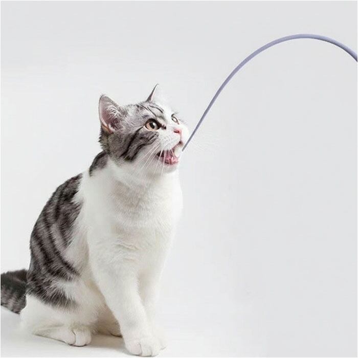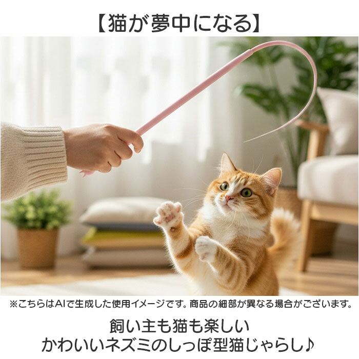 ・ネズミのしっぽのような動きで猫の狩猟本能をしっかり刺激、楽しく夢中で追いかける◎