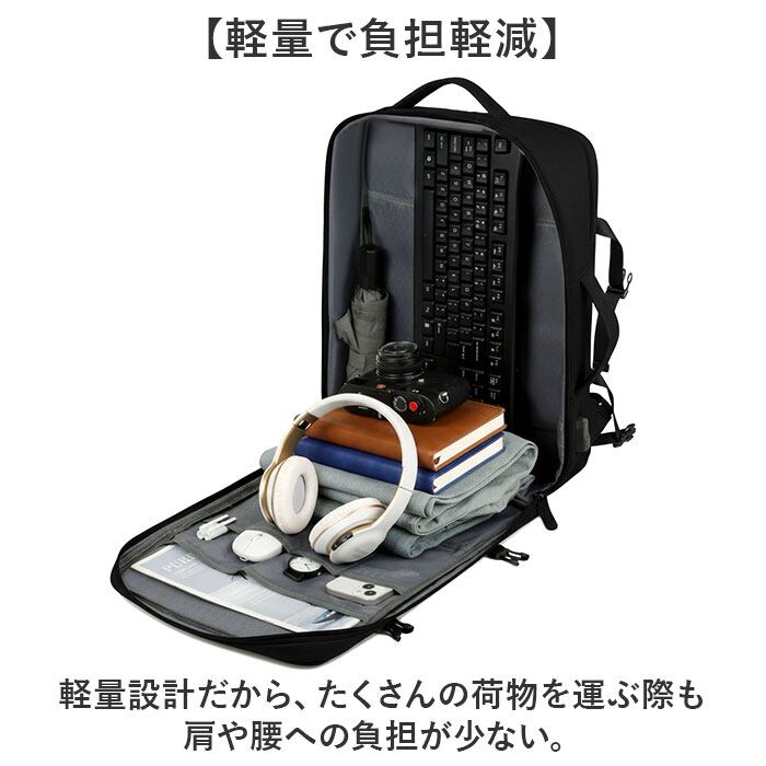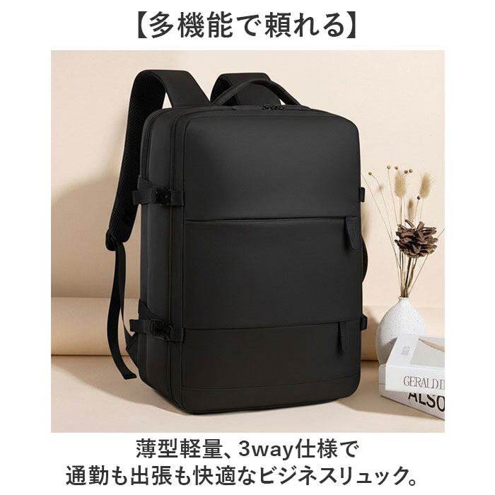 ・薄型軽量、3way仕様で通勤も出張も快適なビジネスリュック。