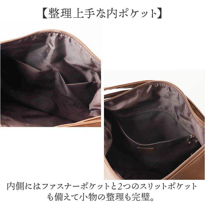 ・内側にはファスナーポケットと2つのスリットポケットも備えて小物の整理も完璧。