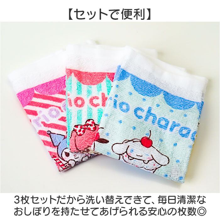 3枚セットだから洗い替えできて、毎日清潔なおしぼりを持たせてあげられる安心の枚数◎