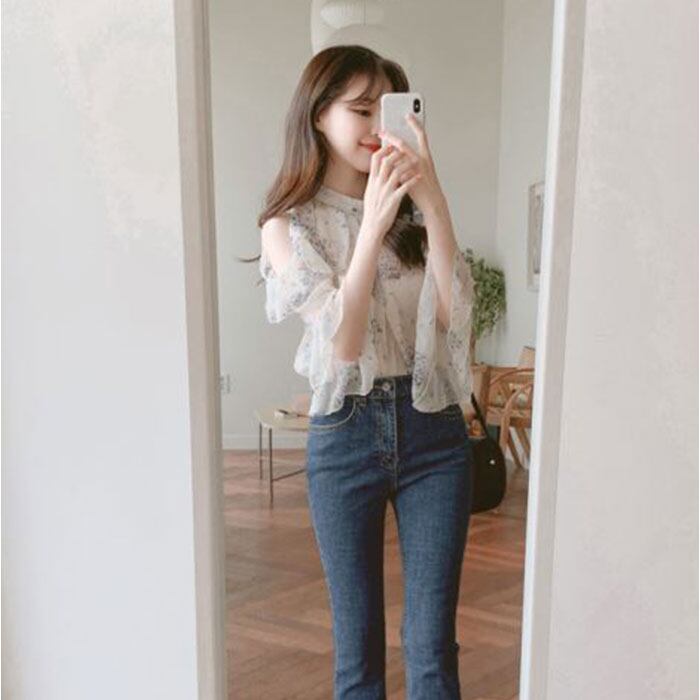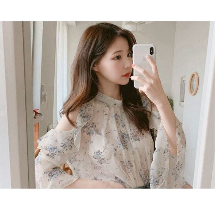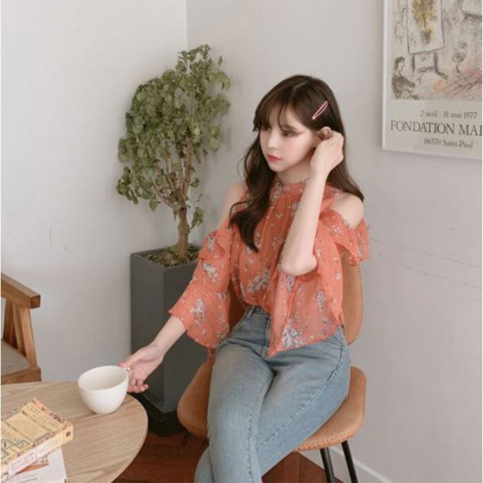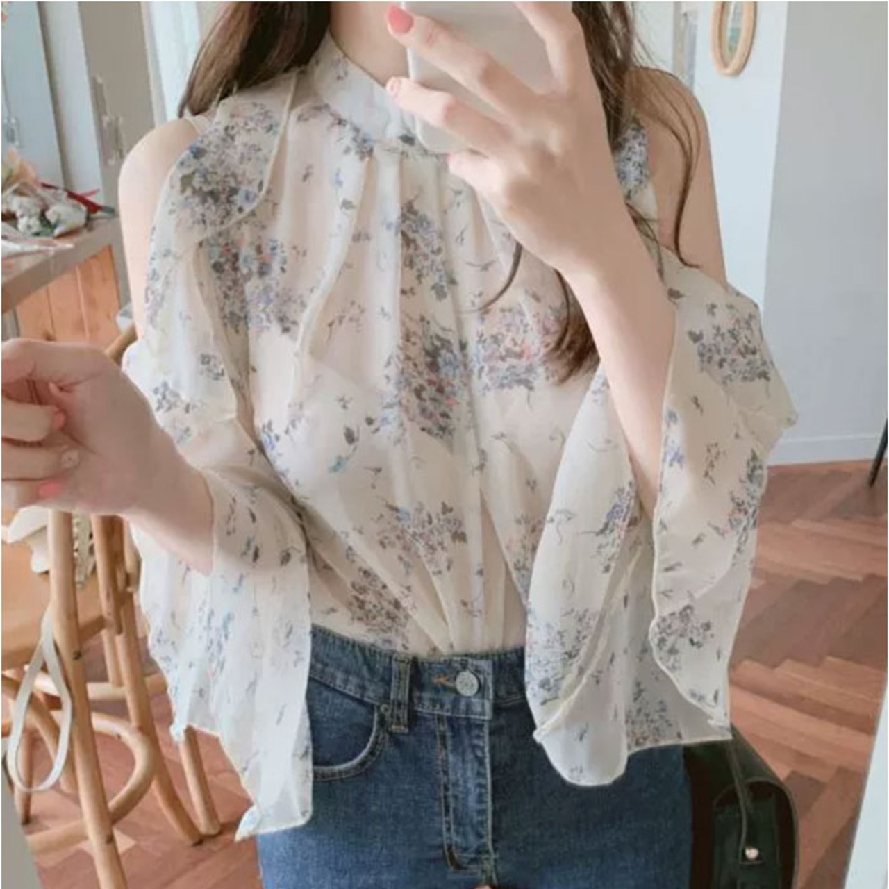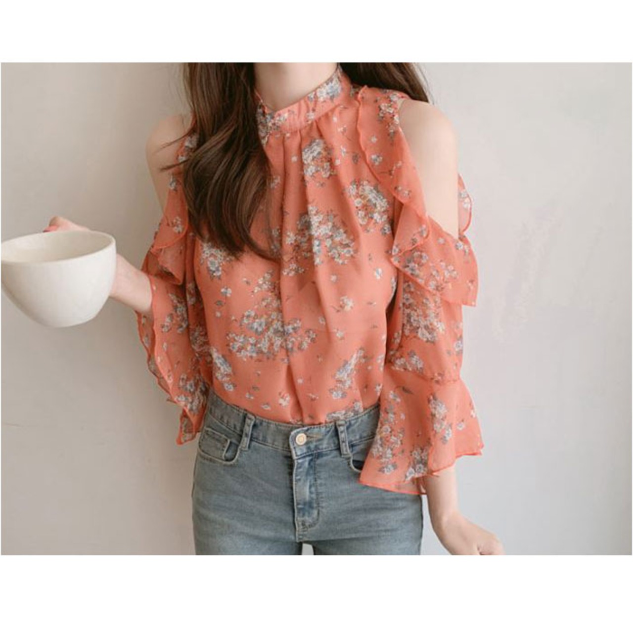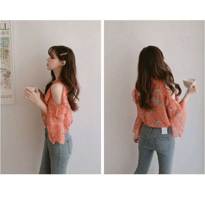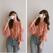 ・袖と肩のたっぷりフリルが女性らしさを引き立て、旬の肩見せで華やかさをプラス♪