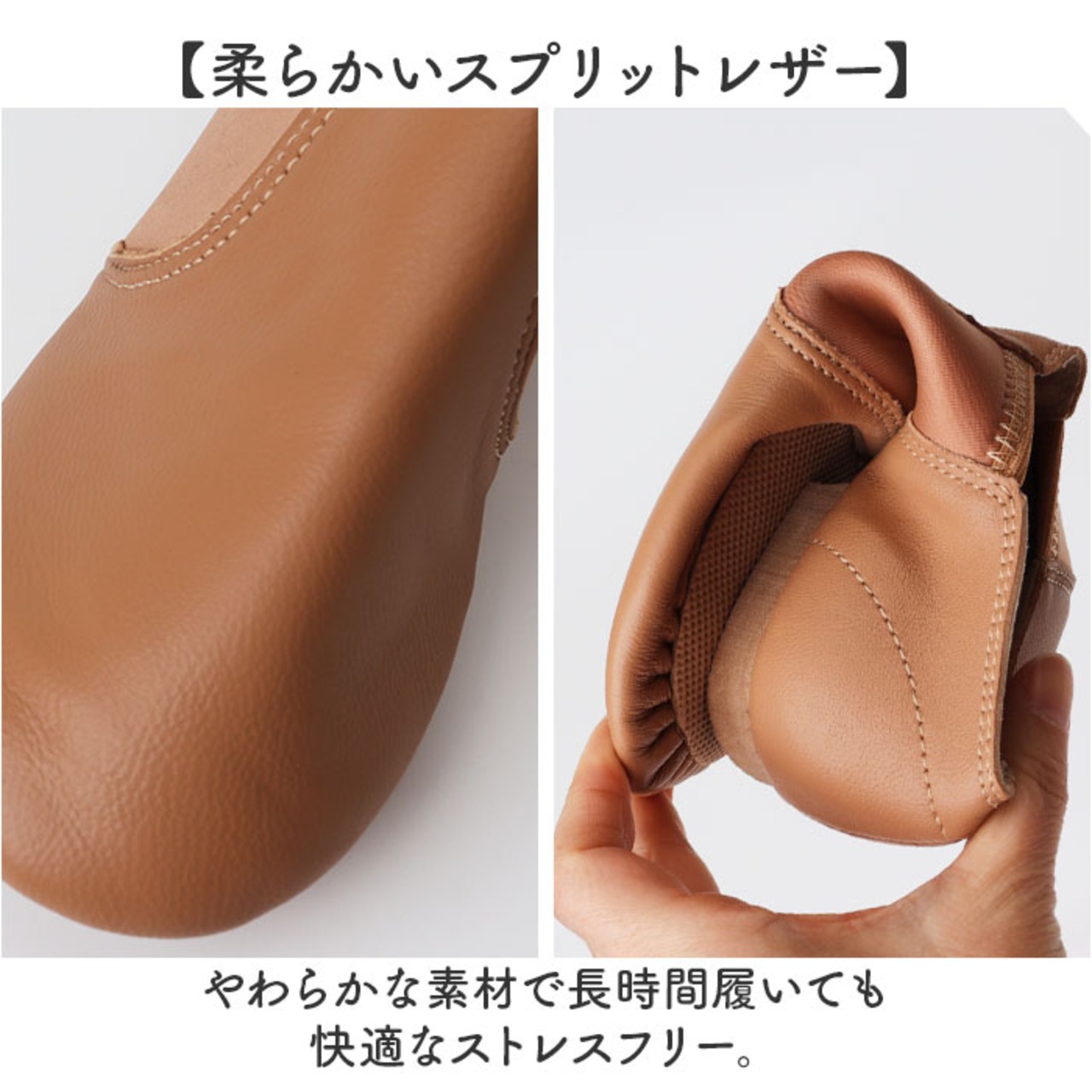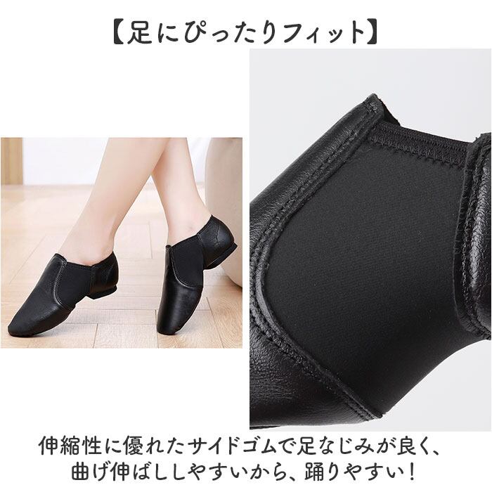 ・伸縮性に優れたサイドゴムで足なじみが良く、曲げ伸ばししやすいから、踊りやすい!