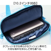 ・タブレットを守る柔らかなクッション素材で、大切な端末を安心して持ち運べる。