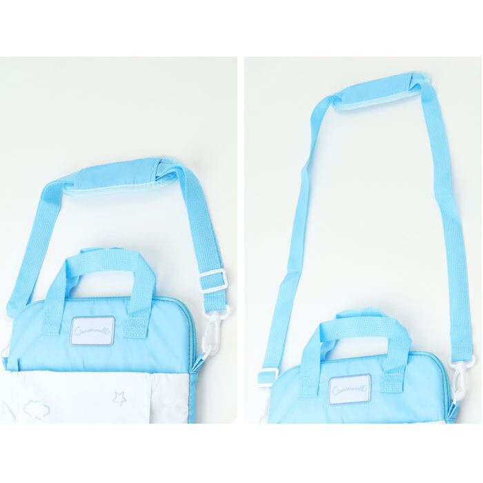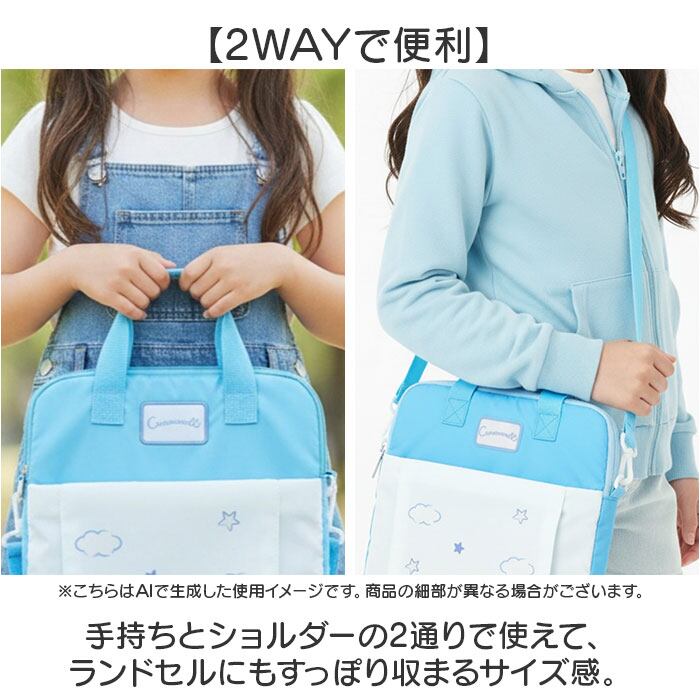 ・手持ちとショルダーの2通りで使えて、ランドセルにもすっぽり収まるサイズ感。