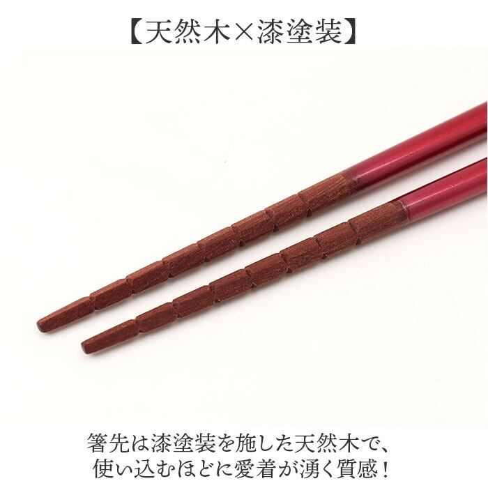 ・箸先は漆塗装を施した天然木で、使い込むほどに愛着が湧く質感!