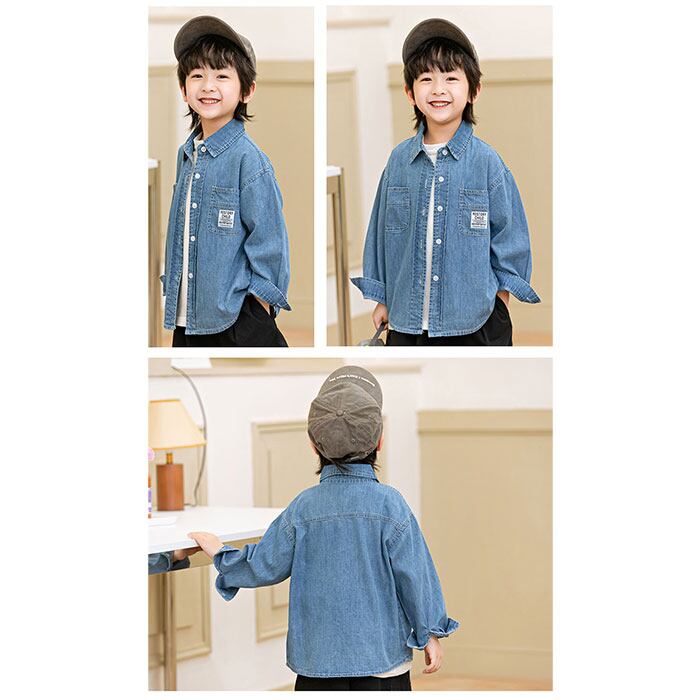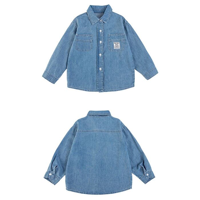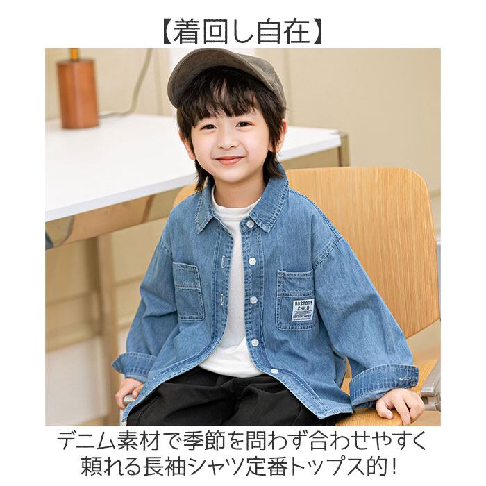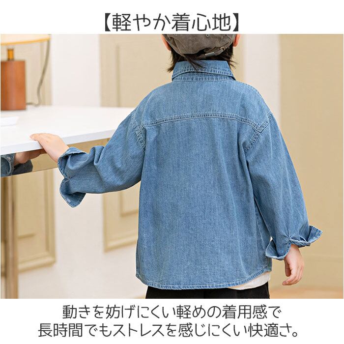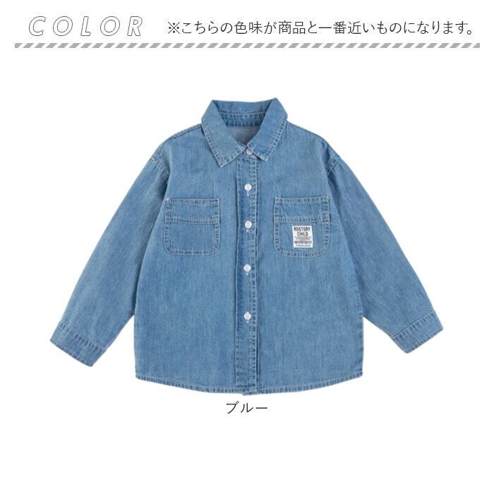 ・シンプルで合わせやすく毎日のコーデに活躍するキッズ向けデニム長袖シャツ。