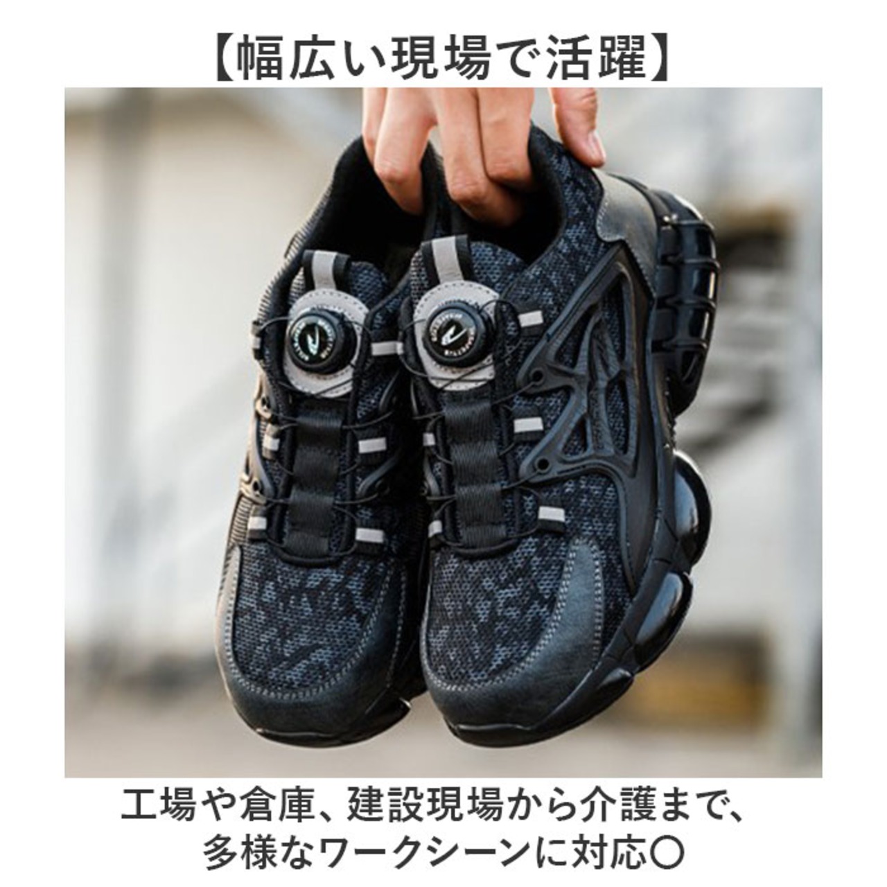 ・工場や倉庫、建設現場から介護まで、多様なワークシーンに対応〇