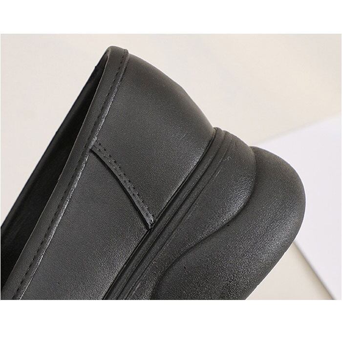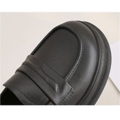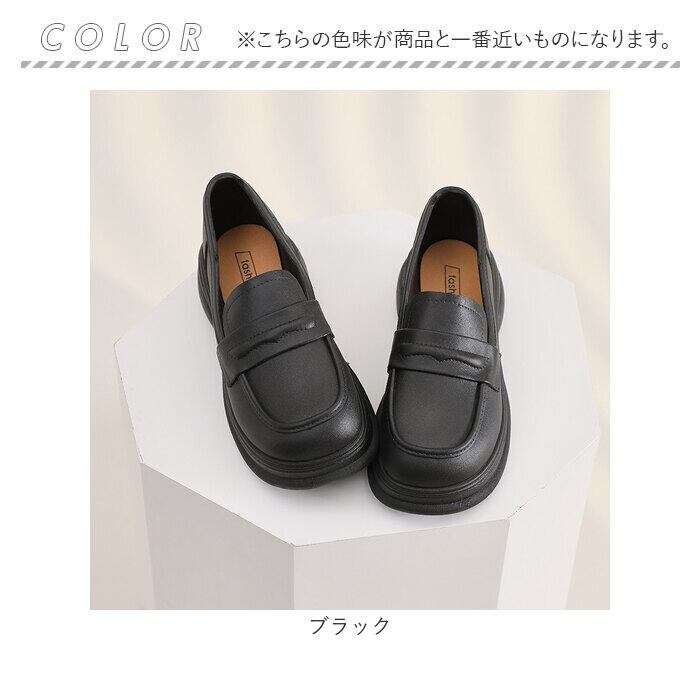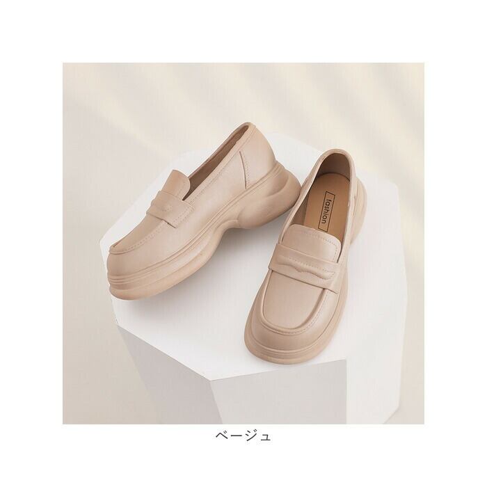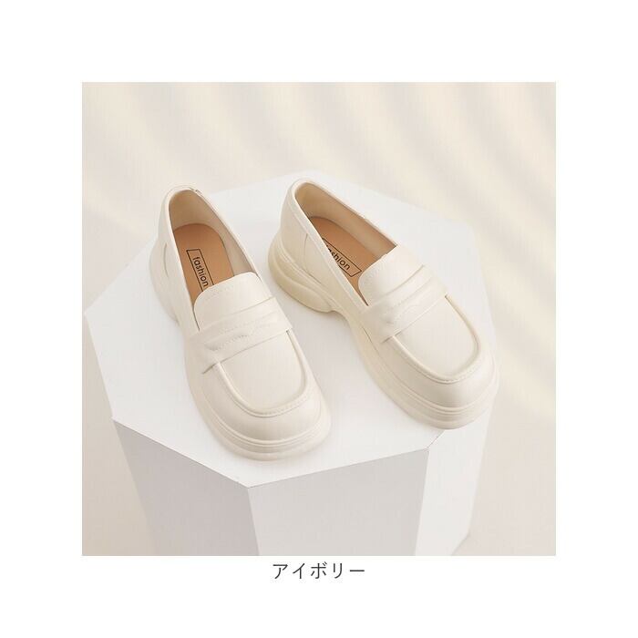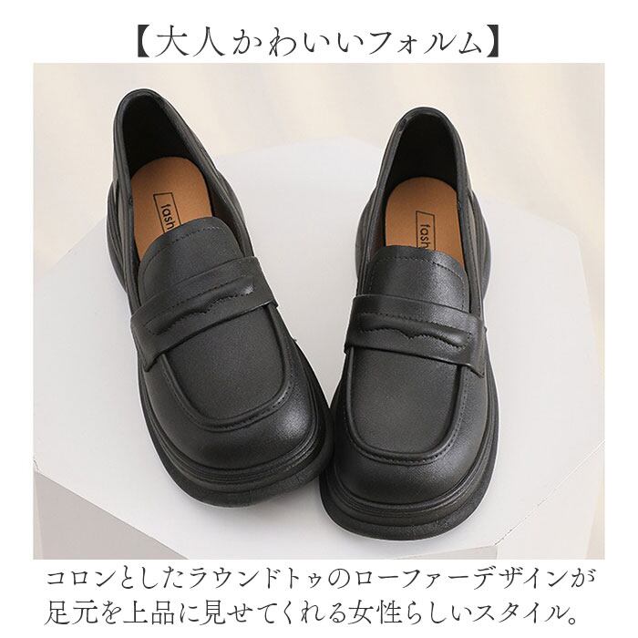 ・コロンとしたラウンドトゥのローファーデザインが足元を上品に見せてくれる女性らしいスタイル。