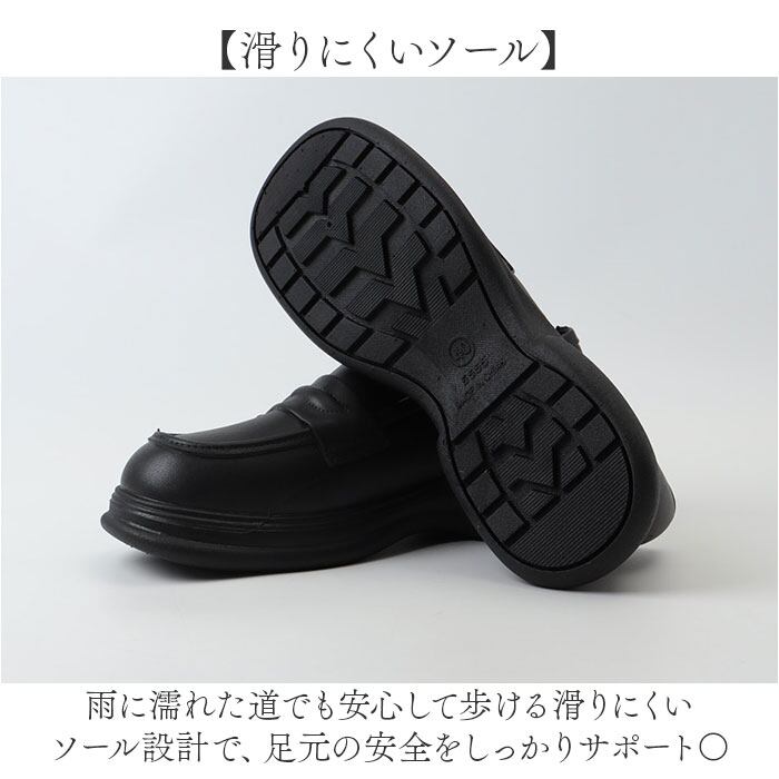 ・雨に濡れた道でも安心して歩ける滑りにくいソール設計で、足元の安全をしっかりサポート〇