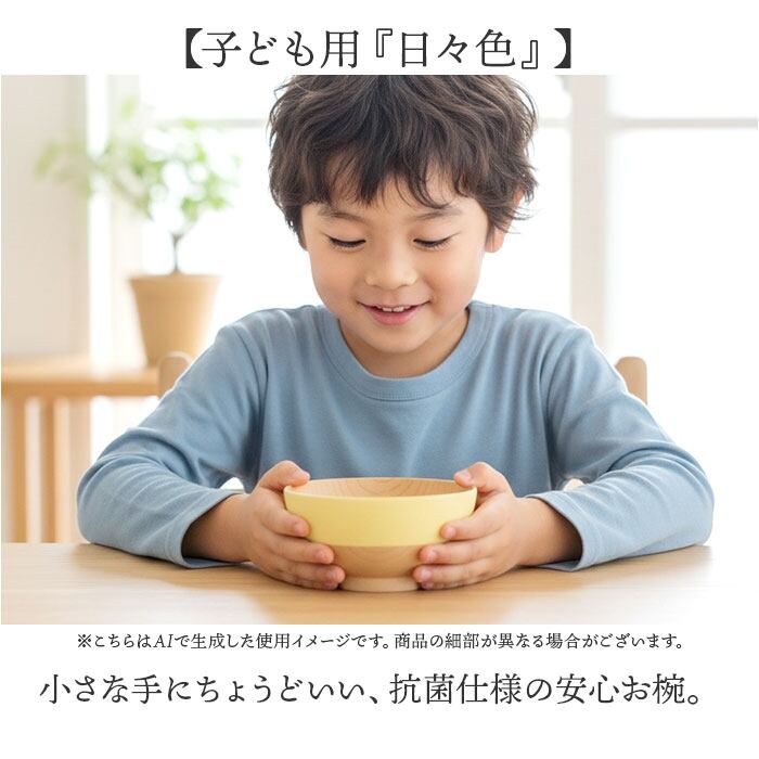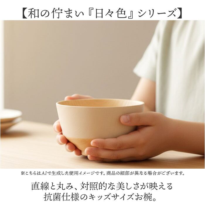 【和の佇まい『日々色』シリーズ】直線と丸み、対照的な美しさが映える抗菌仕様のキッズサイズお椀。