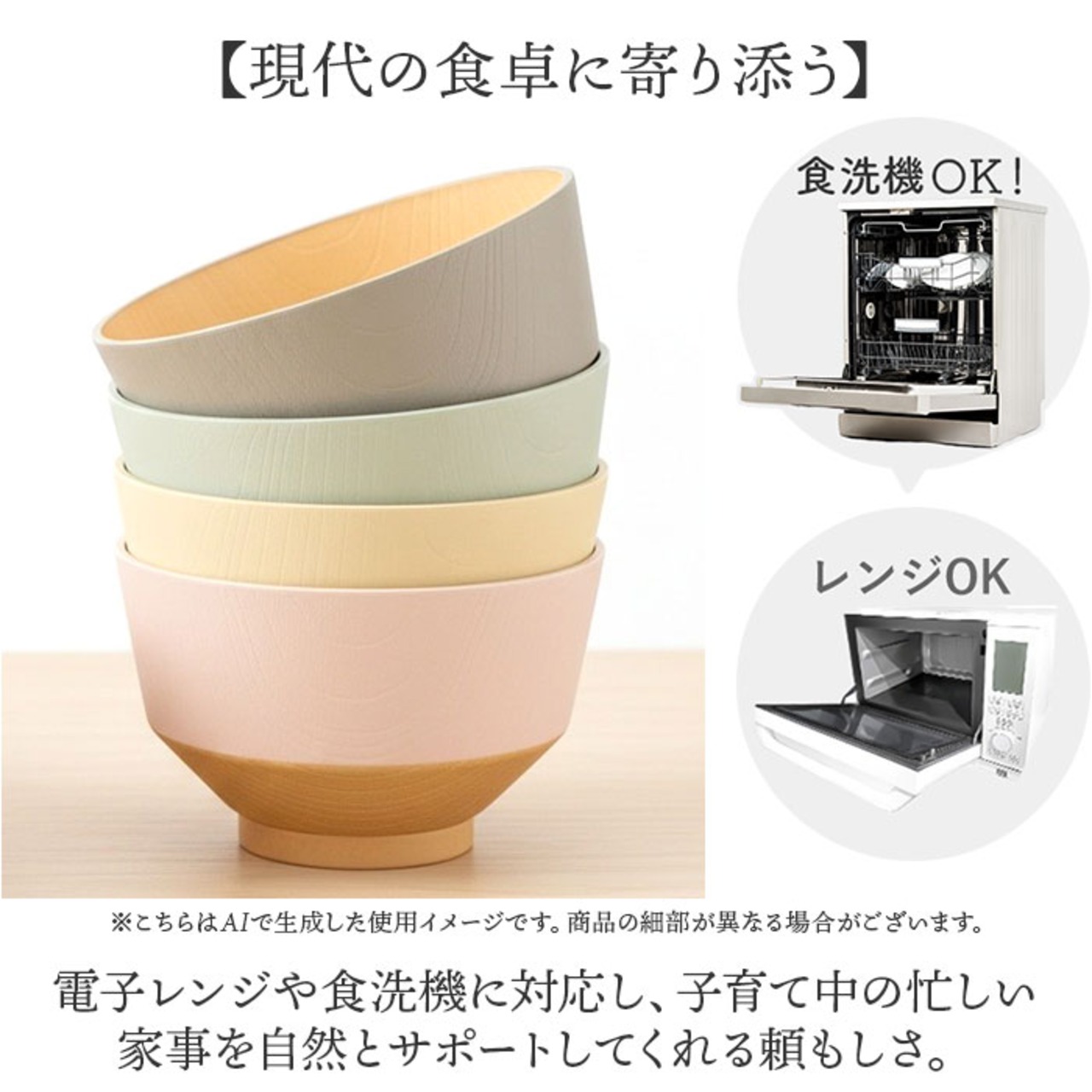 【現代の食卓に寄り添う】電子レンジや食洗機に対応し、子育て中の忙しい家事を自然とサポートしてくれる頼もしさ。