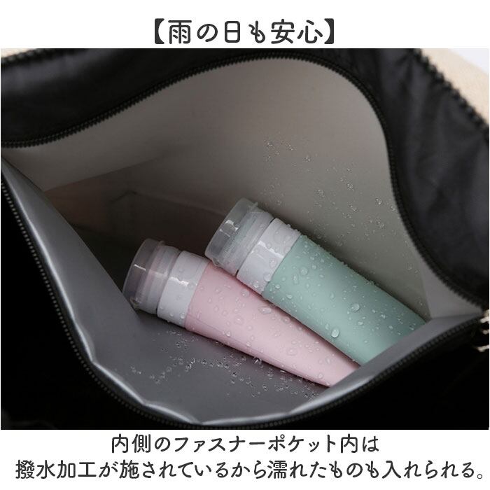 ・内側のファスナーポケット内は撥水加工が施されているから濡れたものも入れられる。