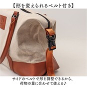 ・サイドのベルトで形を調整できるから、荷物の量に合わせて使える♪