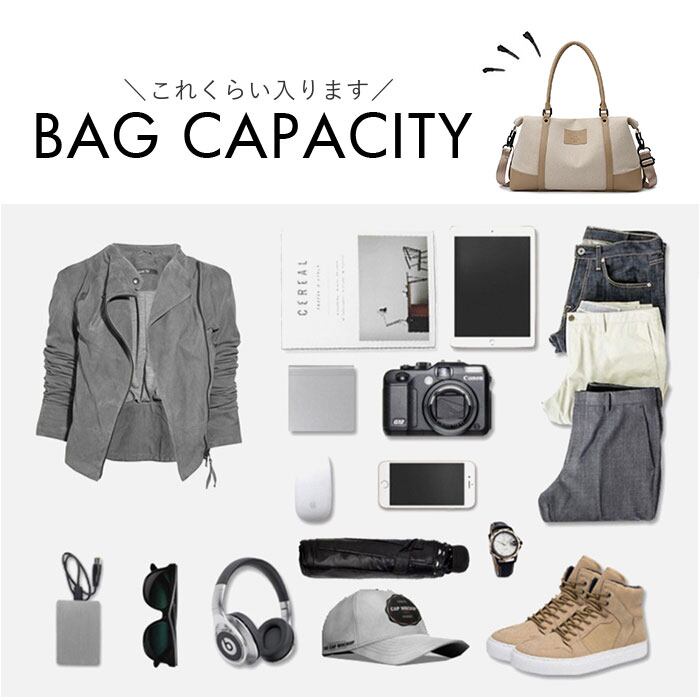 ・旅行にも便利、大容量で収納力抜群のボストンバッグ。