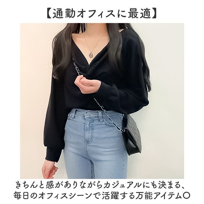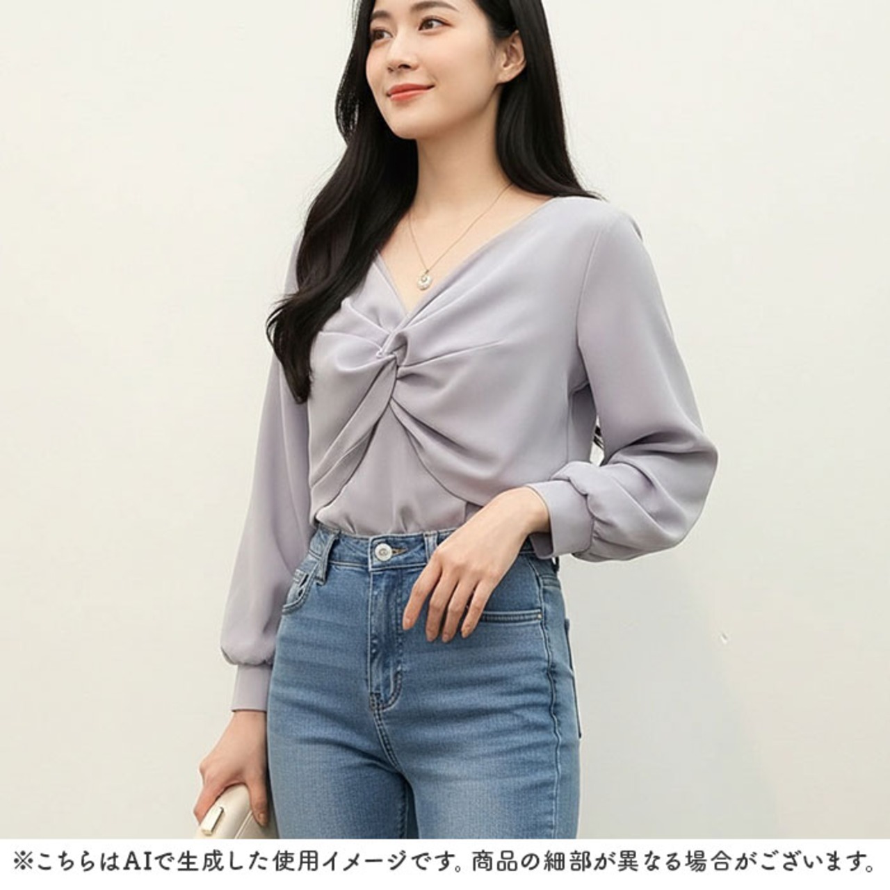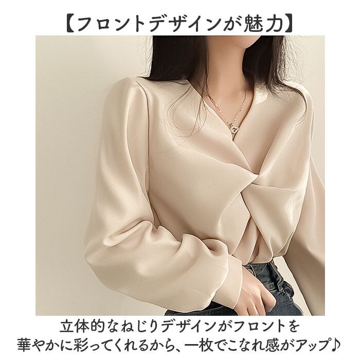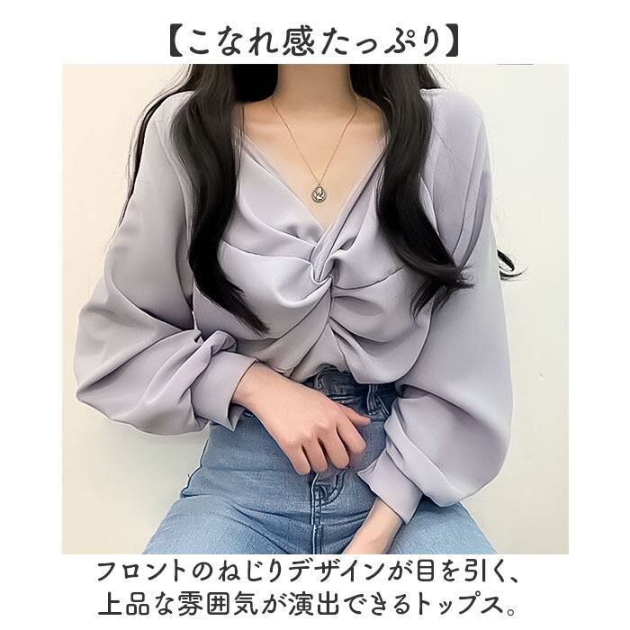 ・フロントのねじりデザインが目を引く、上品な雰囲気が演出できるトップス。