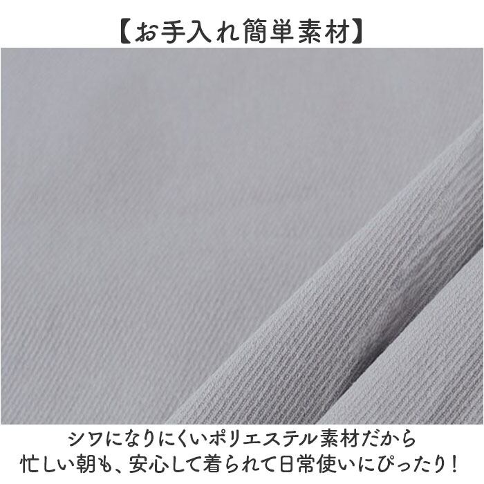・シワになりにくいポリエステル素材だから忙しい朝も、安心して着られて日常使いにぴったり!