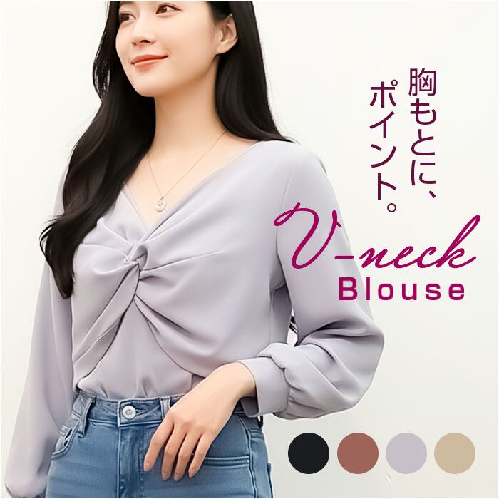 ブラウス Vネック レディース 通販 カジュアルブラウス Vネックブラウス vネックブラウス 長袖ブラウス 長袖シャツ シャツブラウス シャツ レディースブラウス カジュアル シンプル 無地 大人 フロントねじり おしゃれ オシャレ レディースファッション