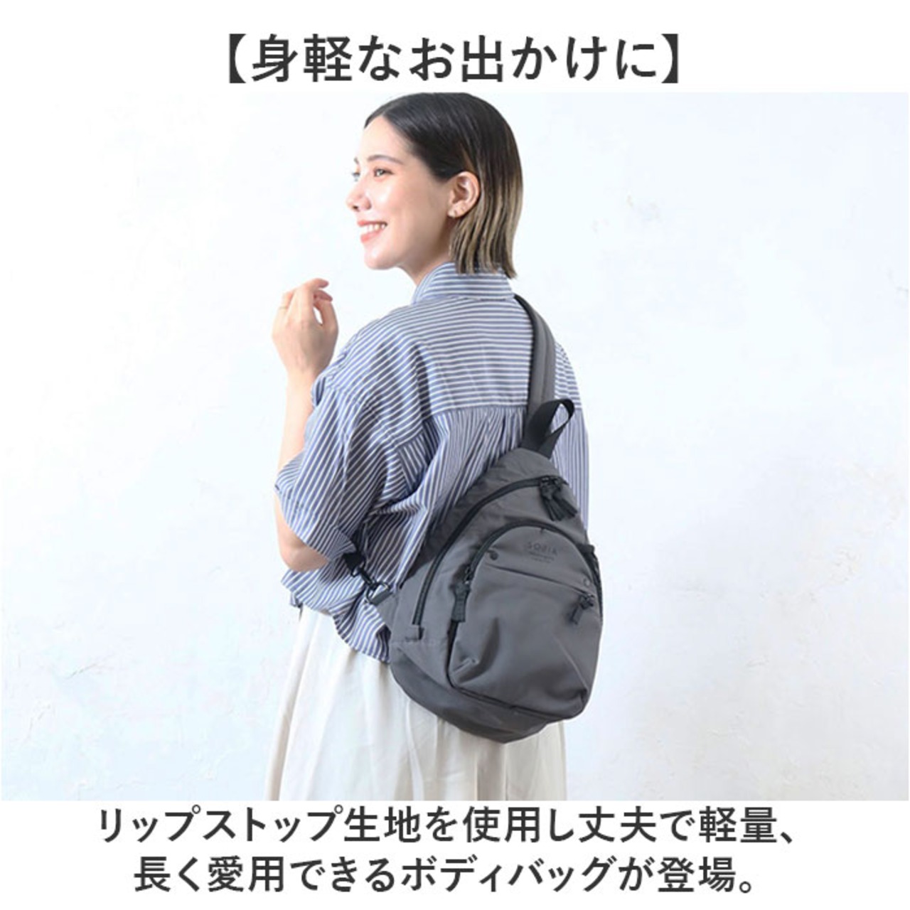 ・リップストップ生地を使用し丈夫で軽量、長く愛用できるボディバッグが登場。