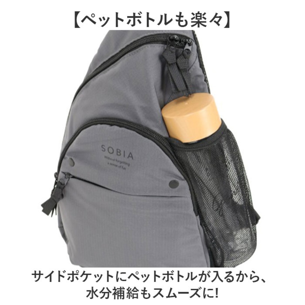 ・サイドポケットにペットボトルが入るから、水分補給もスムーズに!