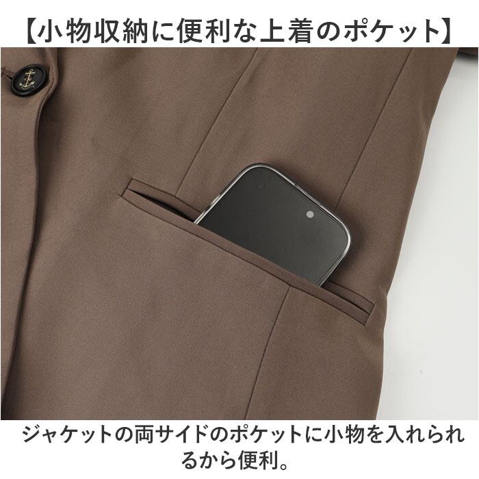 【小物収納に便利な上着のポケット】 ジャケットの両サイドのポケットに小物を入れられるから便利。
