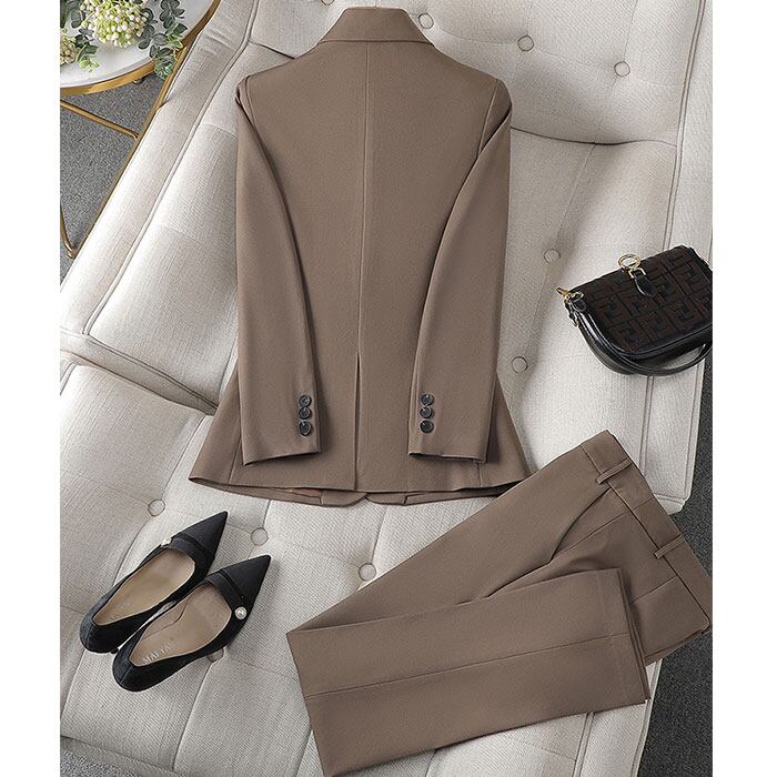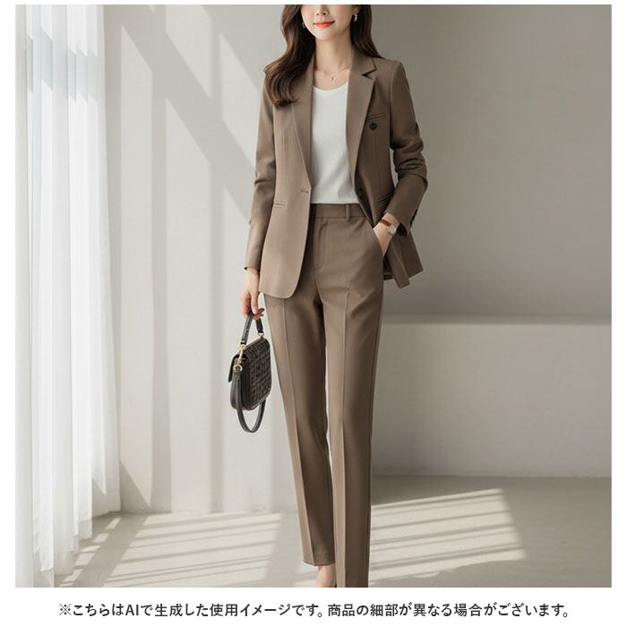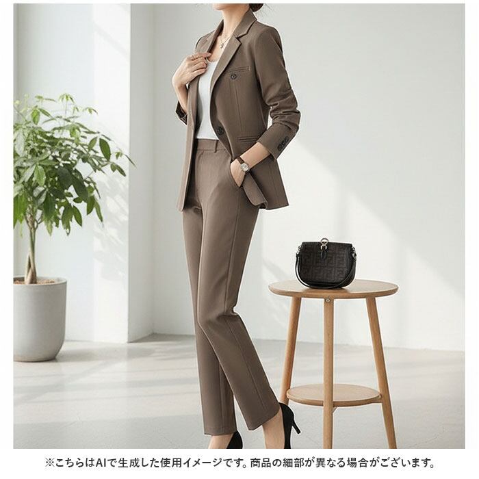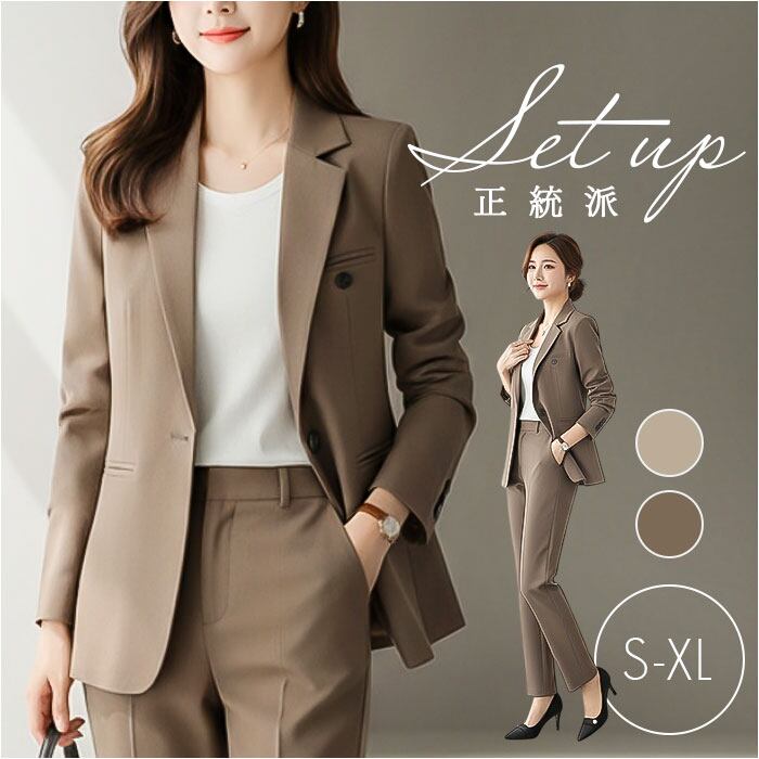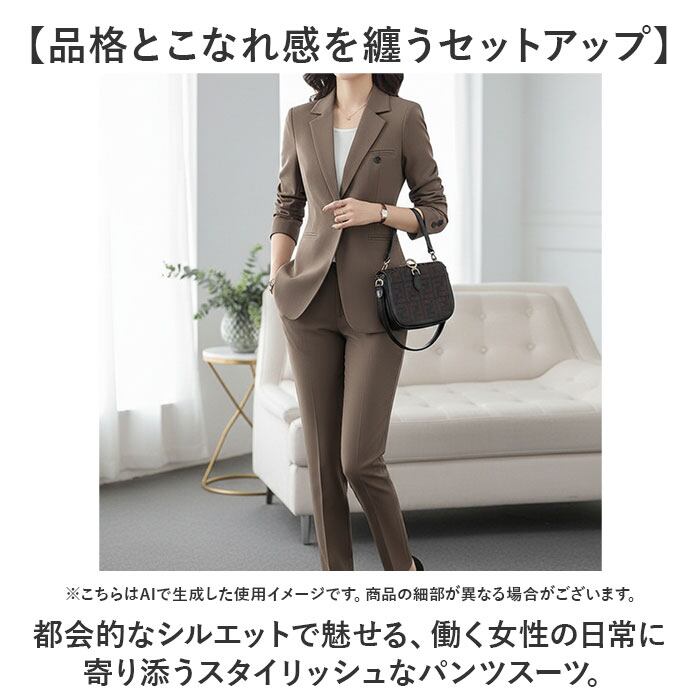 【品格とこなれ感を纏うセットアップ】 都会的なシルエットで魅せる、働く女性の日常に寄り添うスタイリッシュなパンツスーツ。