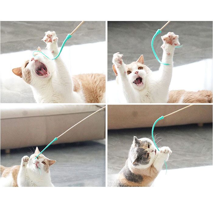 ・ネズミの尻尾型デザインが猫ちゃんの狩猟本能を刺激して、夢中に◎