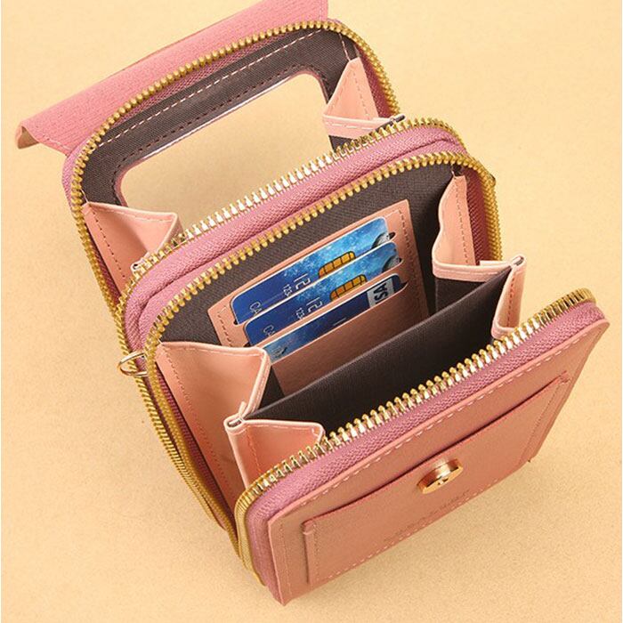 ・透明窓付きで操作もラクラク。お財布機能も備えた多機能ミニポーチ。