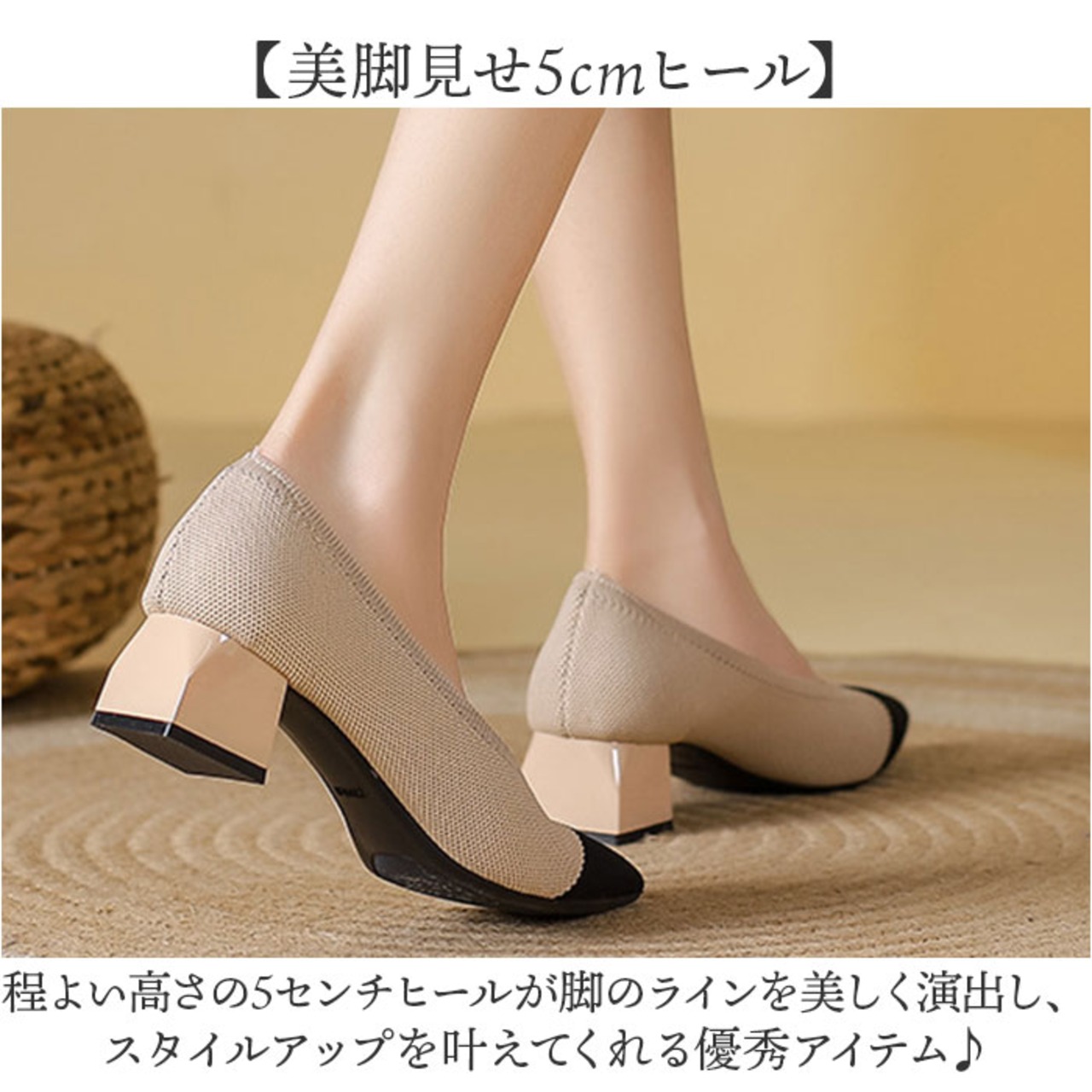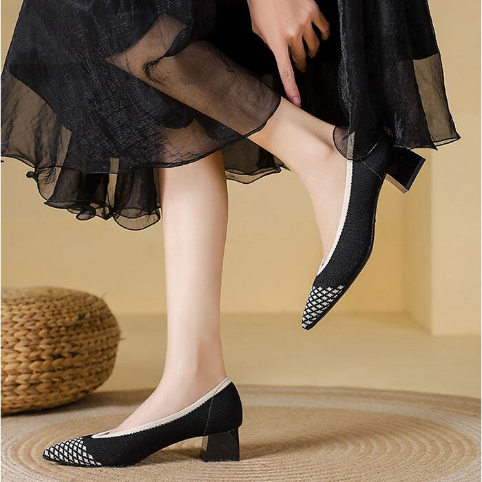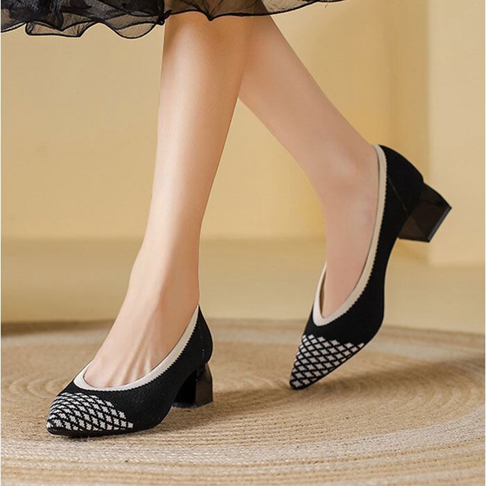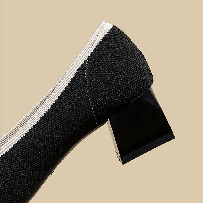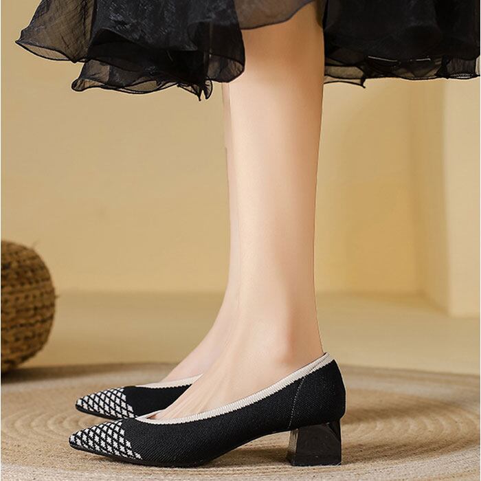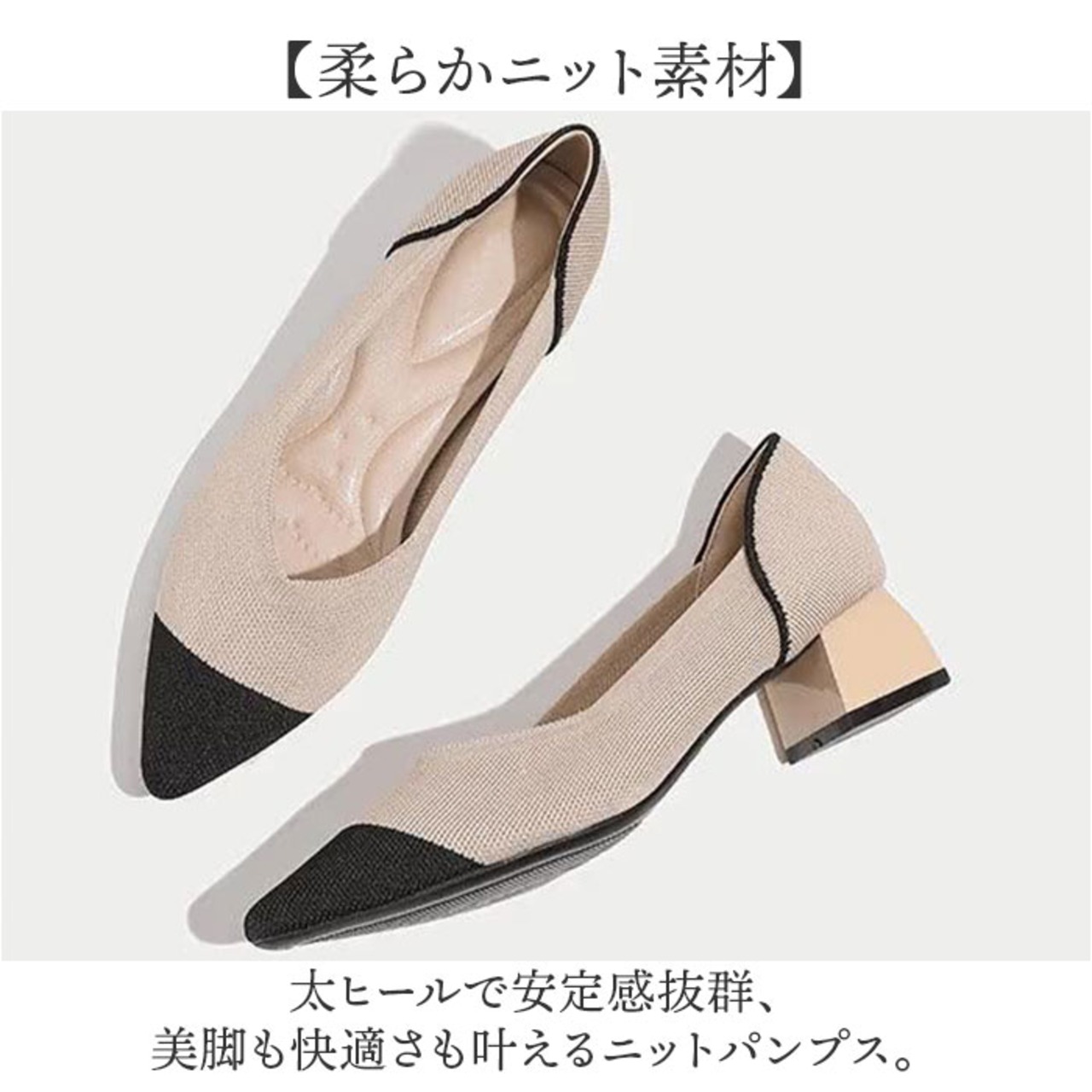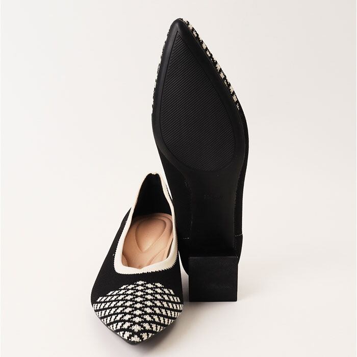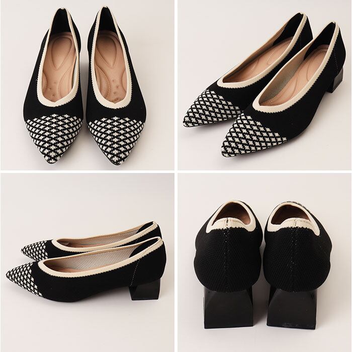 ・太ヒールで安定感抜群、美脚も快適さも叶えるニットパンプス。