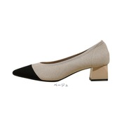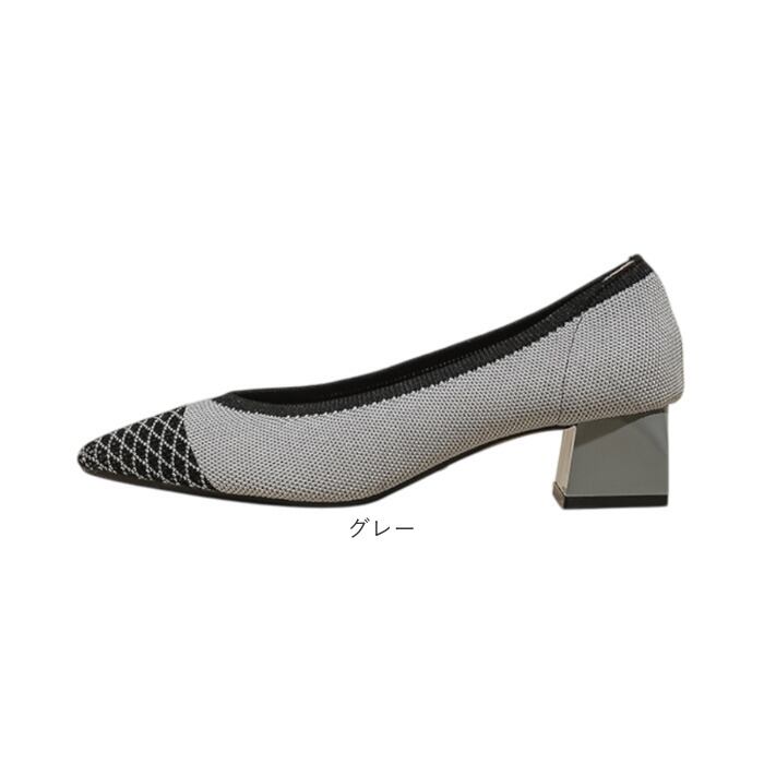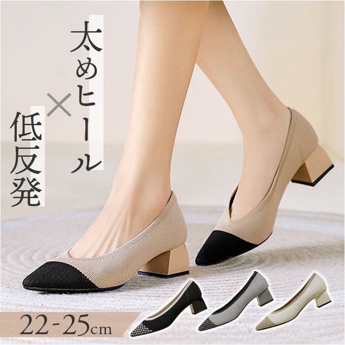 ニットパンプス 太めヒール