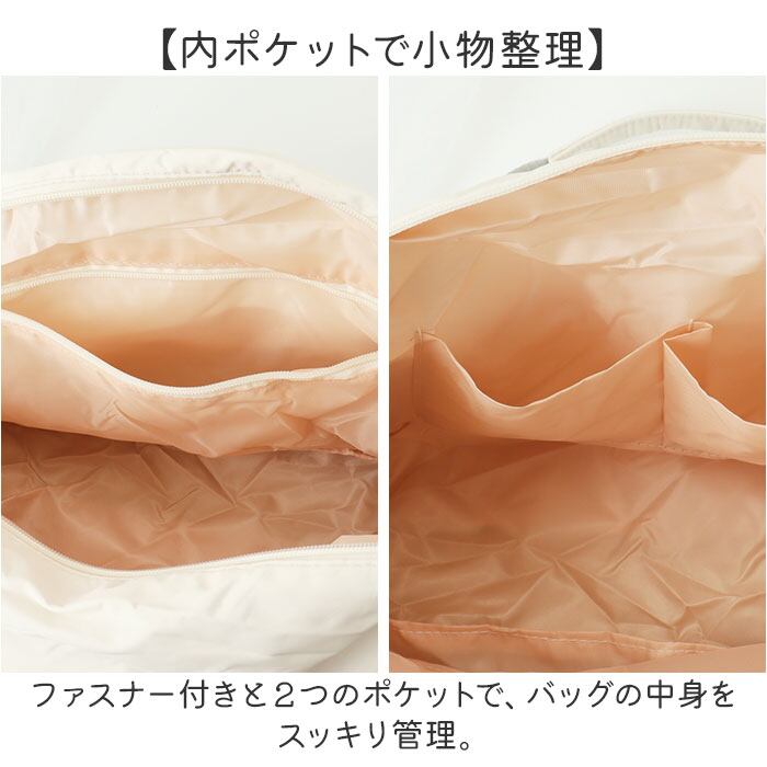 ・ファスナー付きと2つのポケットで、バッグの中身をスッキリ管理。