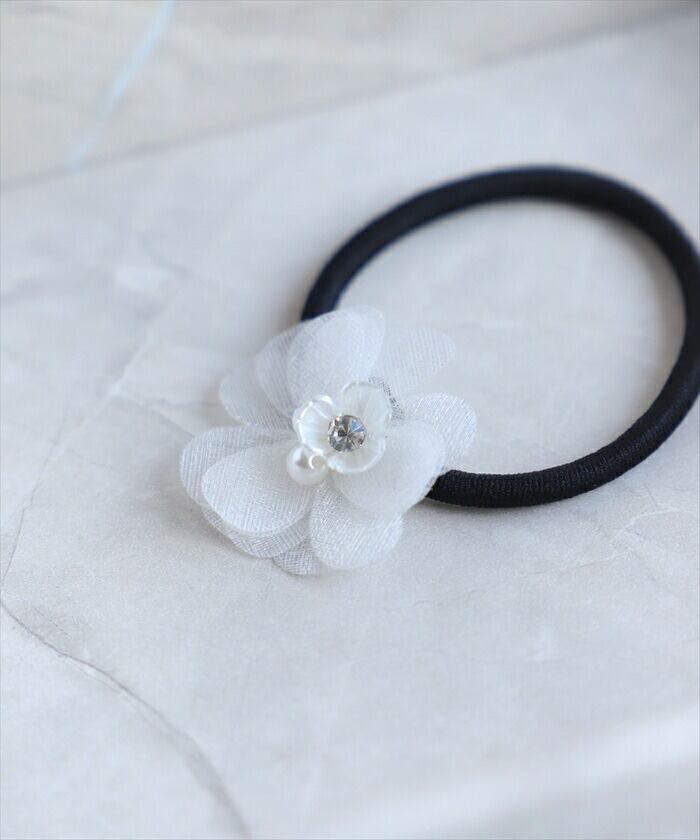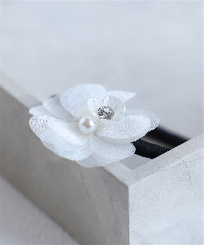 ・まるで雪の結晶が舞い降りたかのような、透明感あふれる可憐な「スノーフラワー ヘアゴム」。