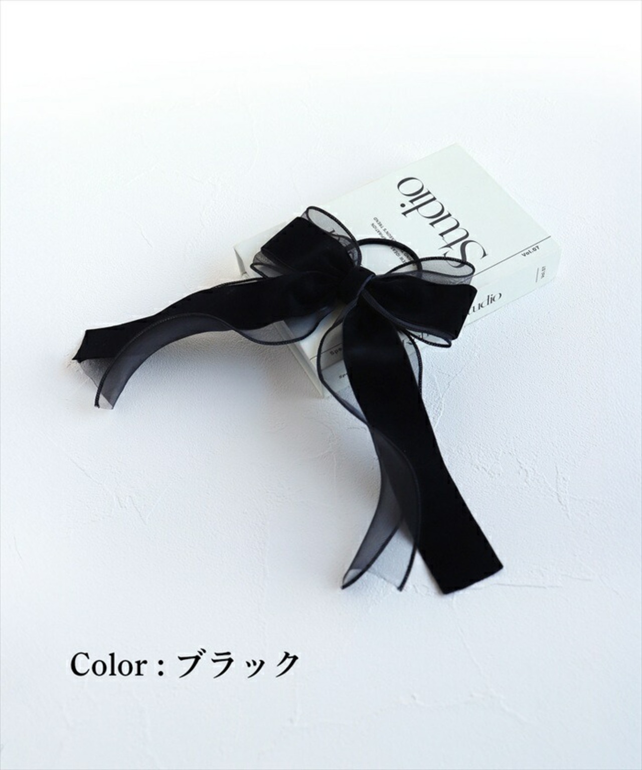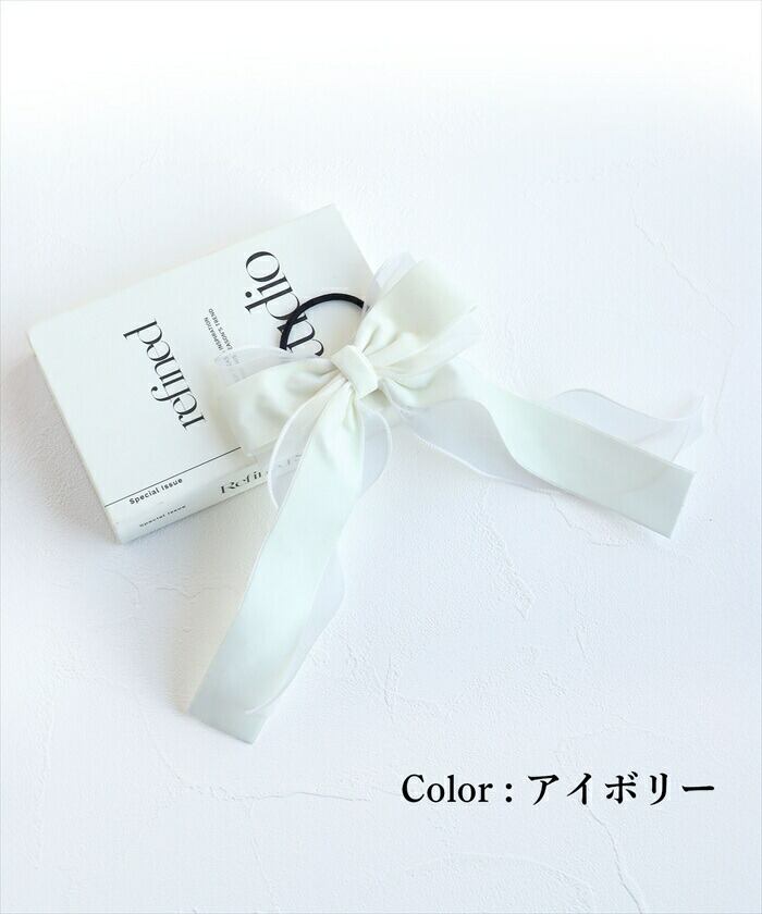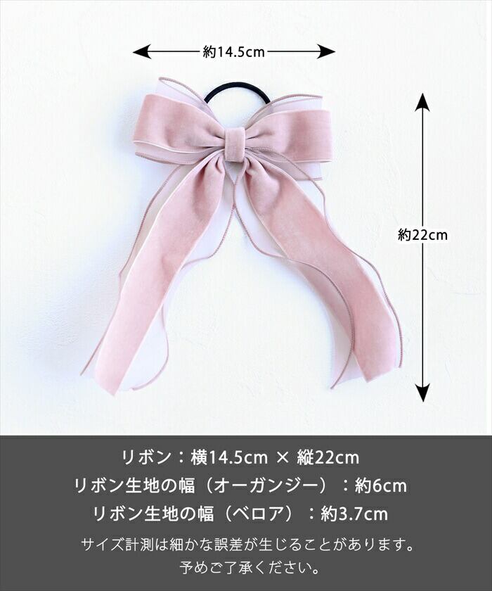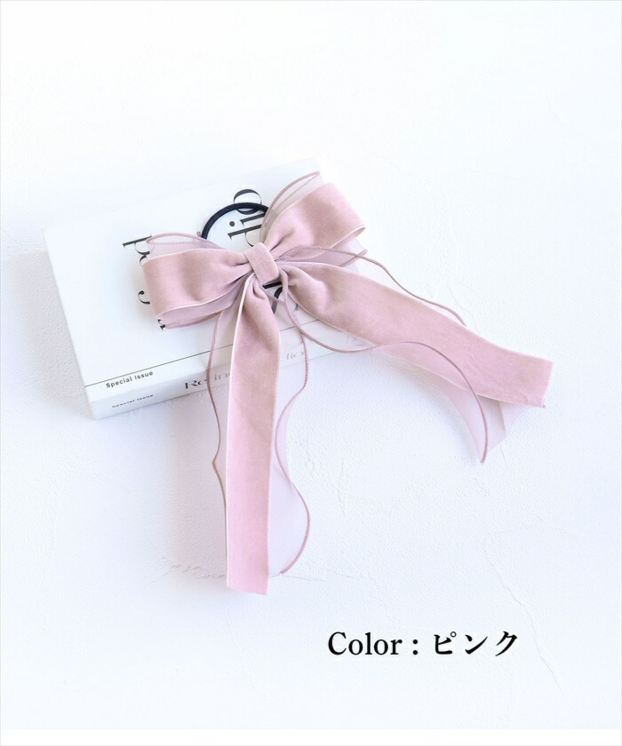 ・ふんわり軽やかな透け感のあるオーガンジーと、 しっとりとした光沢が魅力の高級ベロアを贅沢に重ねた きれいめリボンの「グレース リボン ヘアゴム」。