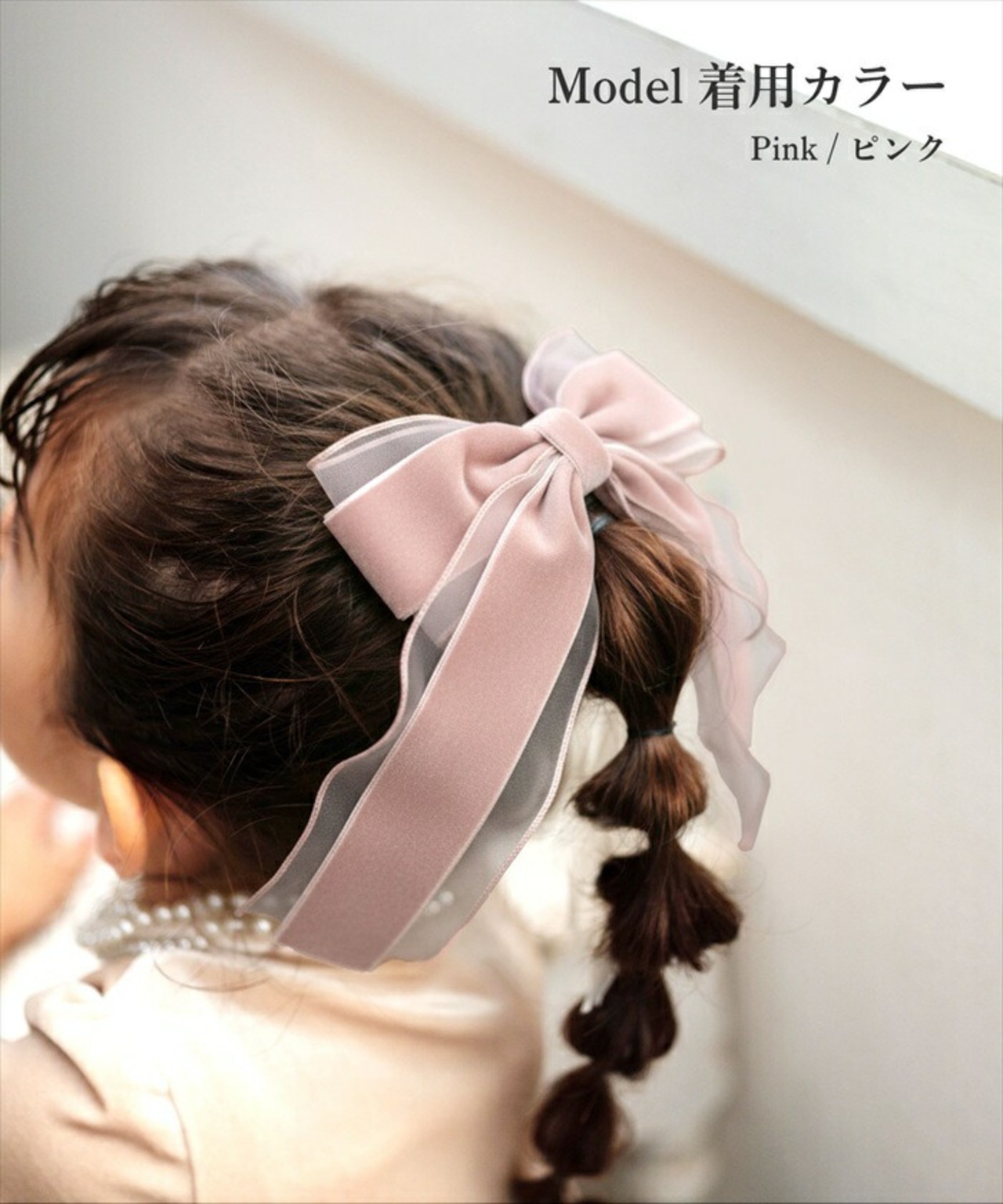 ・大きめリボンながらも、 落ち着いたブラック、アイボリー、ピンクのカラー展開で、 お子様から大人の方まで幅広い世代にマッチ。