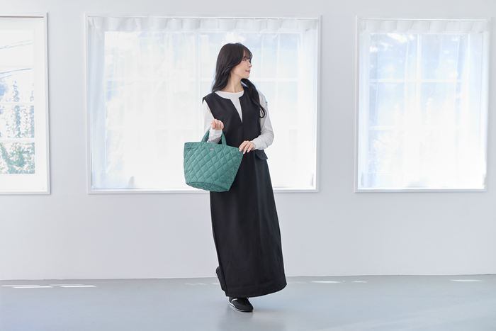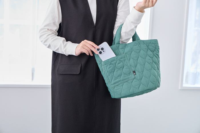 ・丸底デザインで見た目以上にたっぷり収納。お財布、スマホ、ポーチ、ボトル、折り畳み傘まで。必要なものがすっきり収まります。