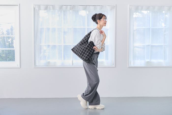 ・ワンハンドルの持ち手は肩に掛けやすく、体に自然に寄り添うやわらかさ。通勤や通学にはもちろん、休日の街歩きや旅行先の散策でも、軽やかに心地よく持ち運べます。